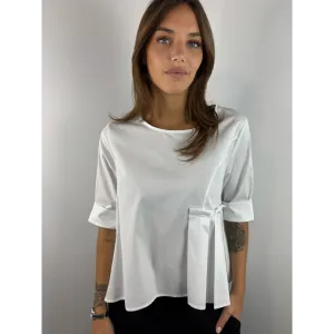Camicia corta sul davanti e lunga dietro con pieghe su un lato. 98%Co2%Ea