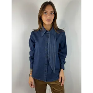 Camicia con collo asimmetrico in tessuto denim leggero