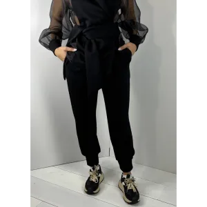 Panta laccio, con elastico in vita , bottone e cerniera e laccio.
