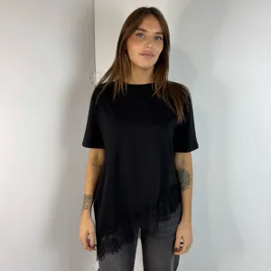 T-Shirt nera over con inserto in pizzo