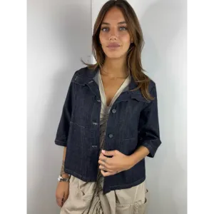 Giacca in denim leggero corta, maniche 3/4. Abbottonatura fino alla fine del colletto.
