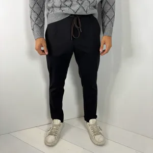Panta laccio, con elastico in vita , bottone e cerniera e laccio.