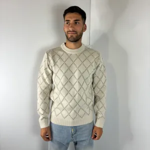 Maglia collo a giro , lavorazione rombi. 30%Lana70%Modal