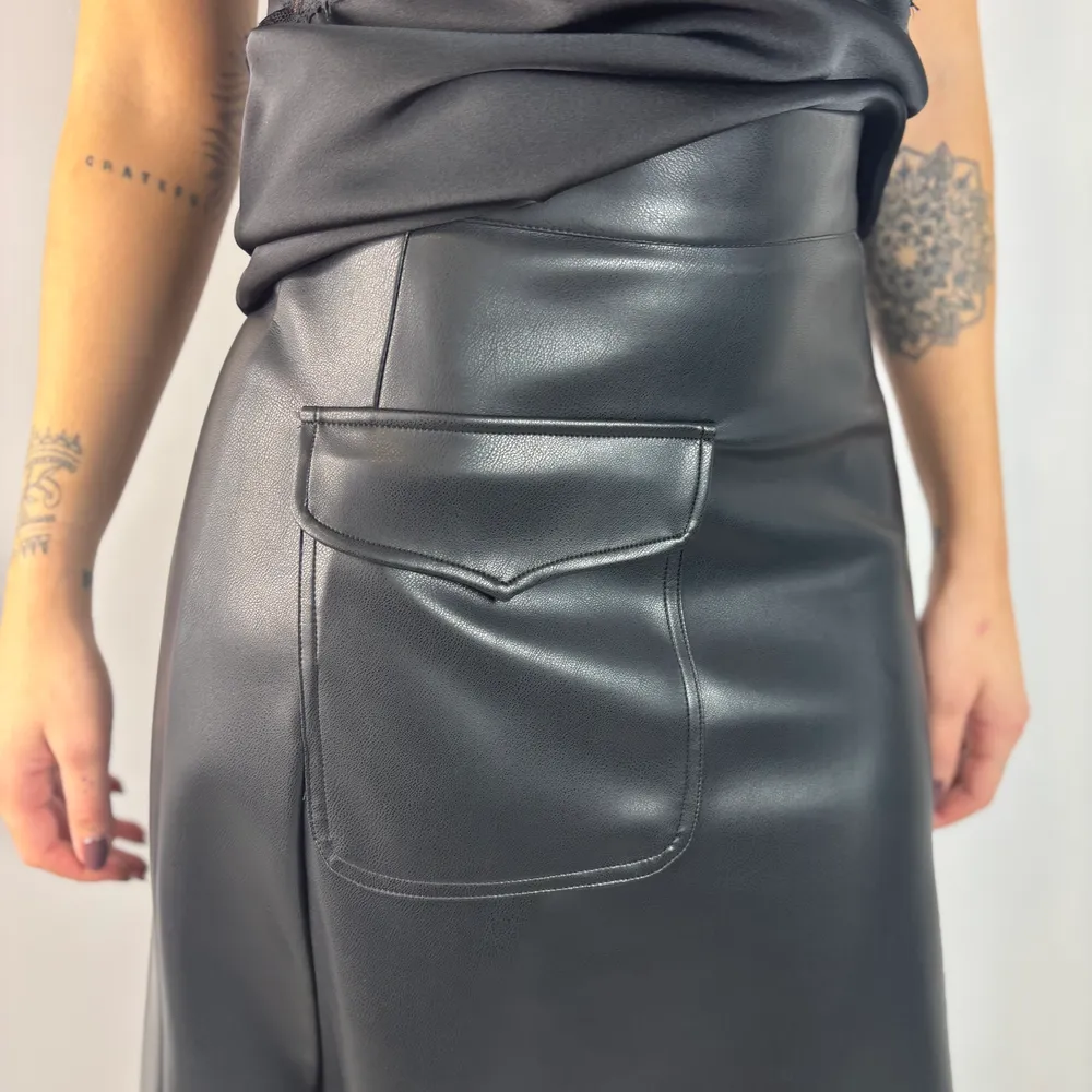 Gonna lunga effetto pelle con spacco sul davanti.
