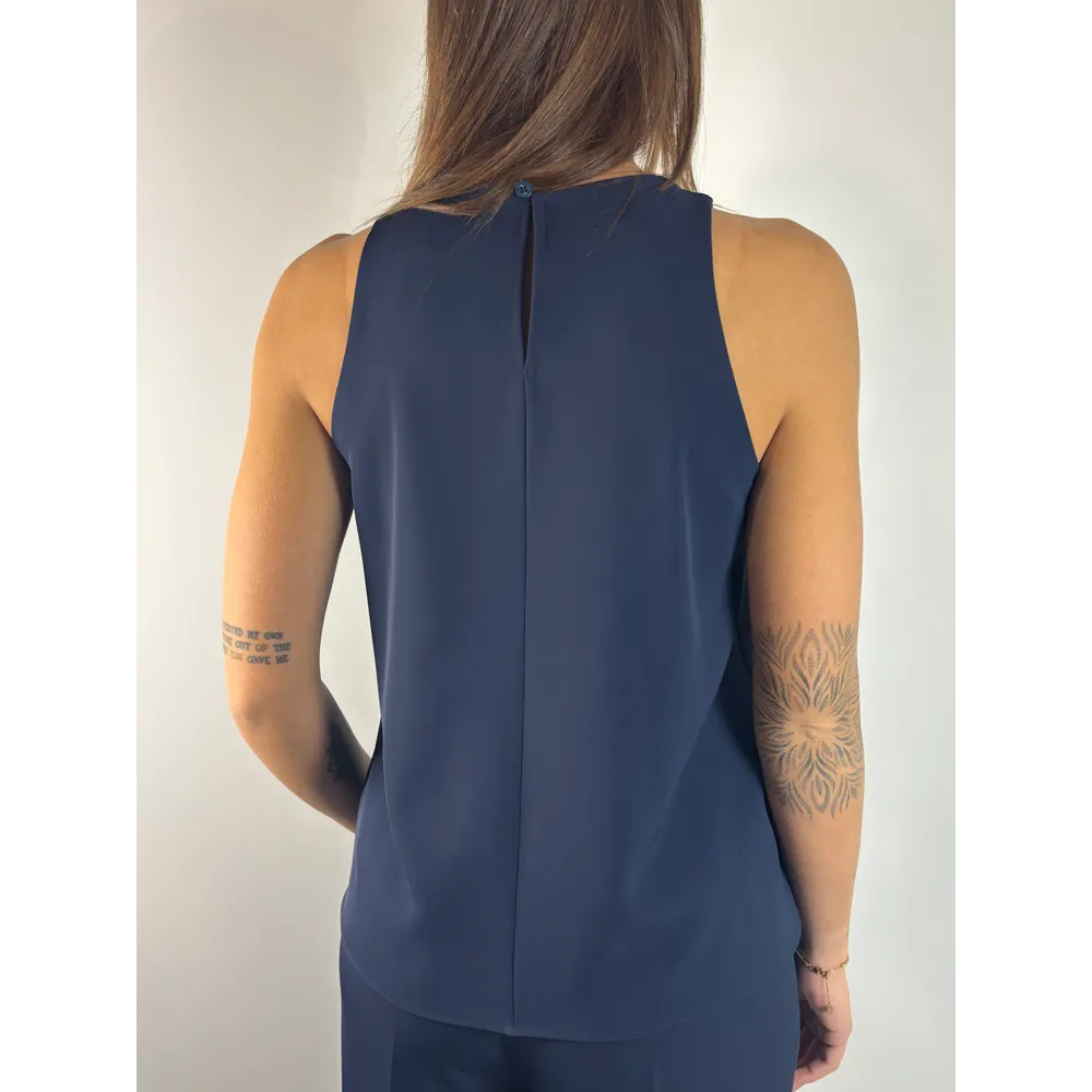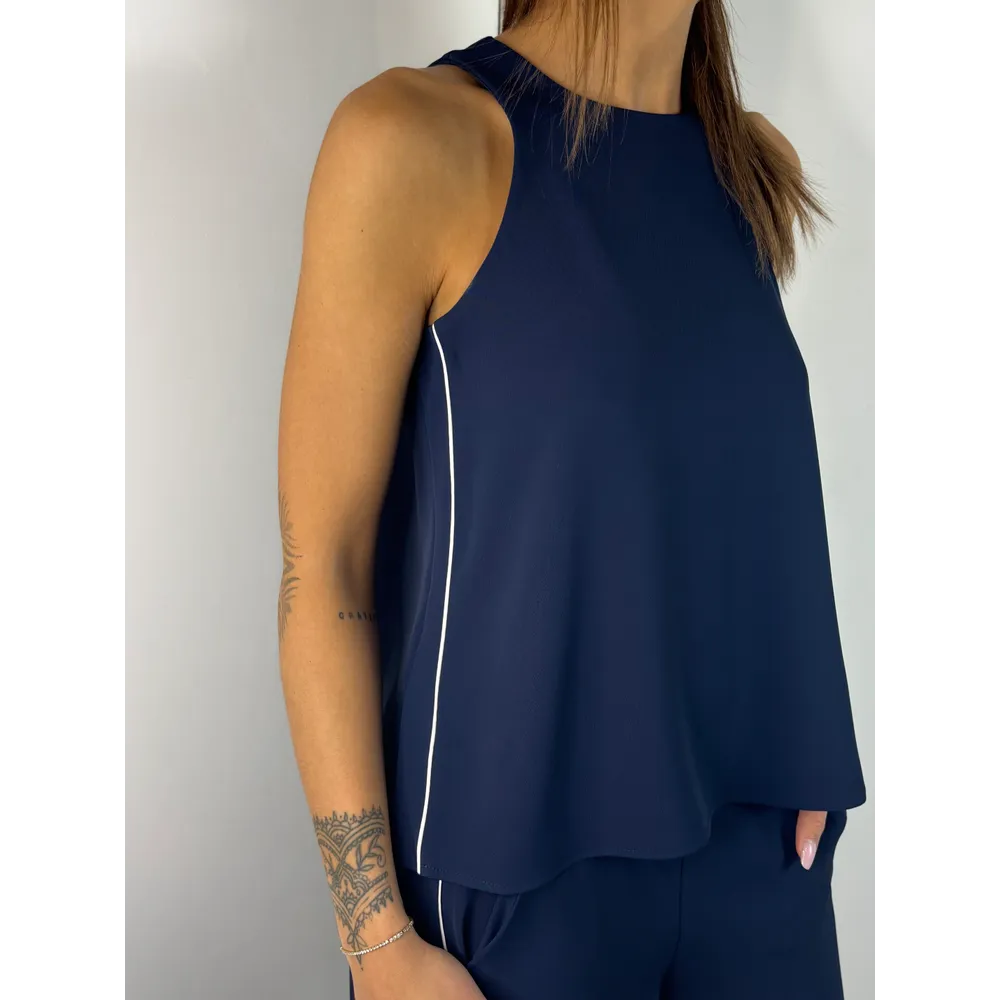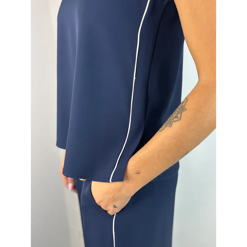 Top in fluido con profilo cordonato e spacchetti laterali.