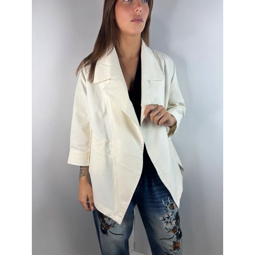 Giacca over taglio trasversale senza chiusura. Colletto ampio.