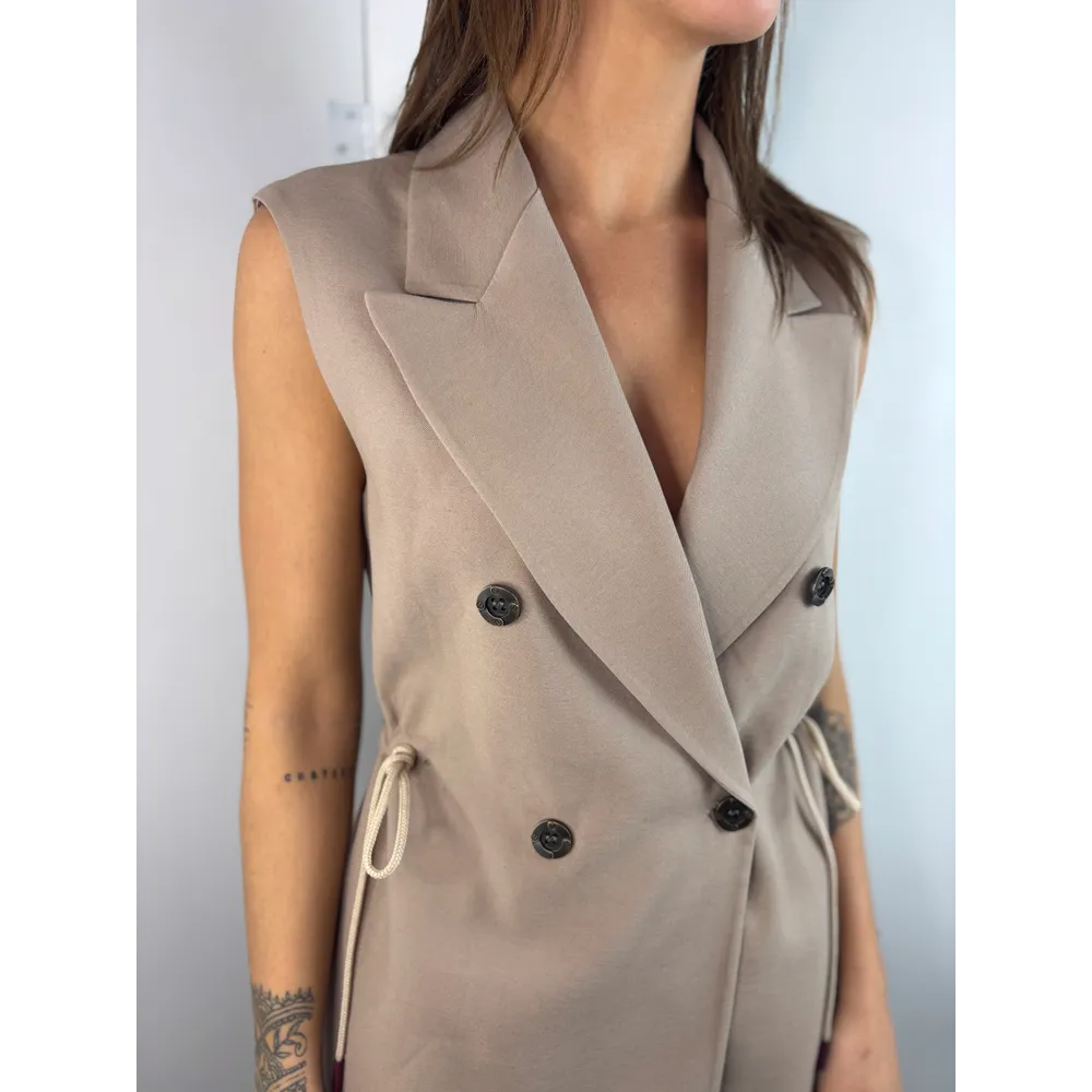 Gilet lungo con coulisse. Chiusura doppiopetto.