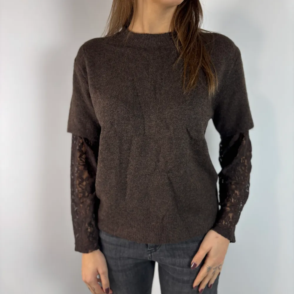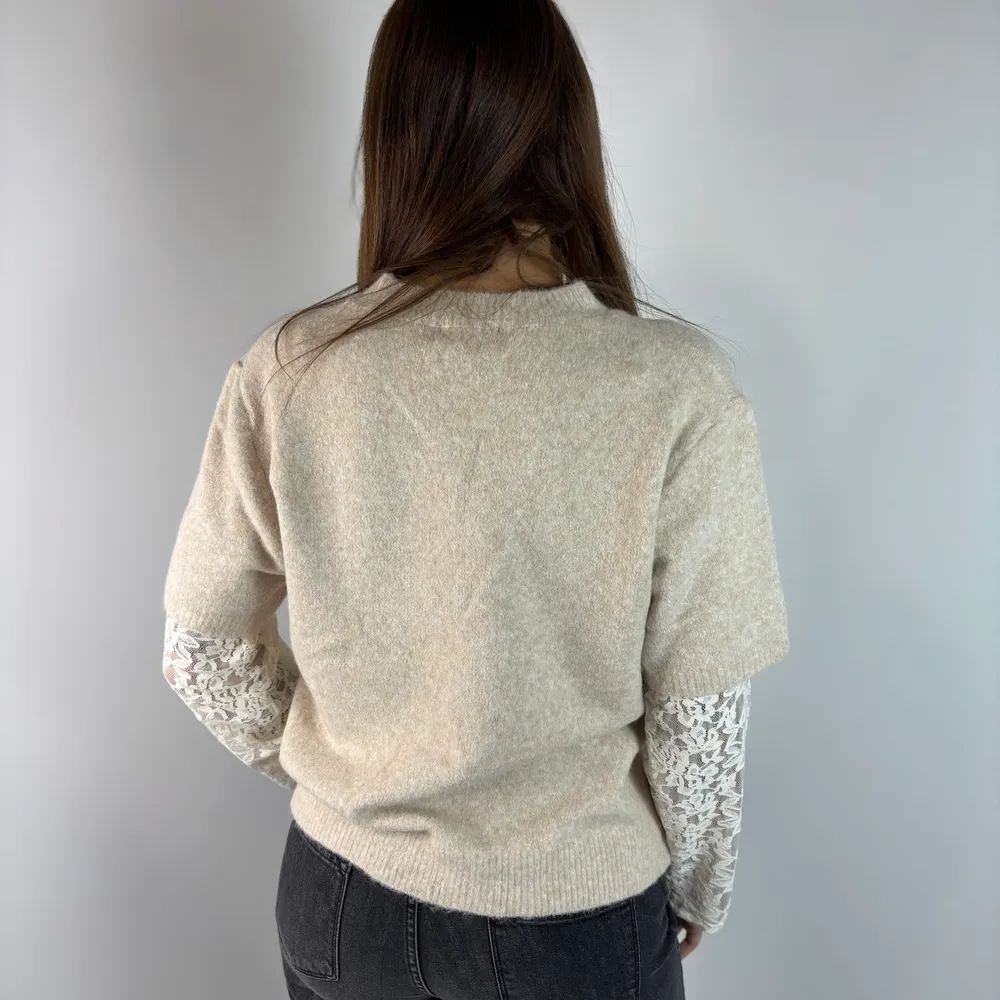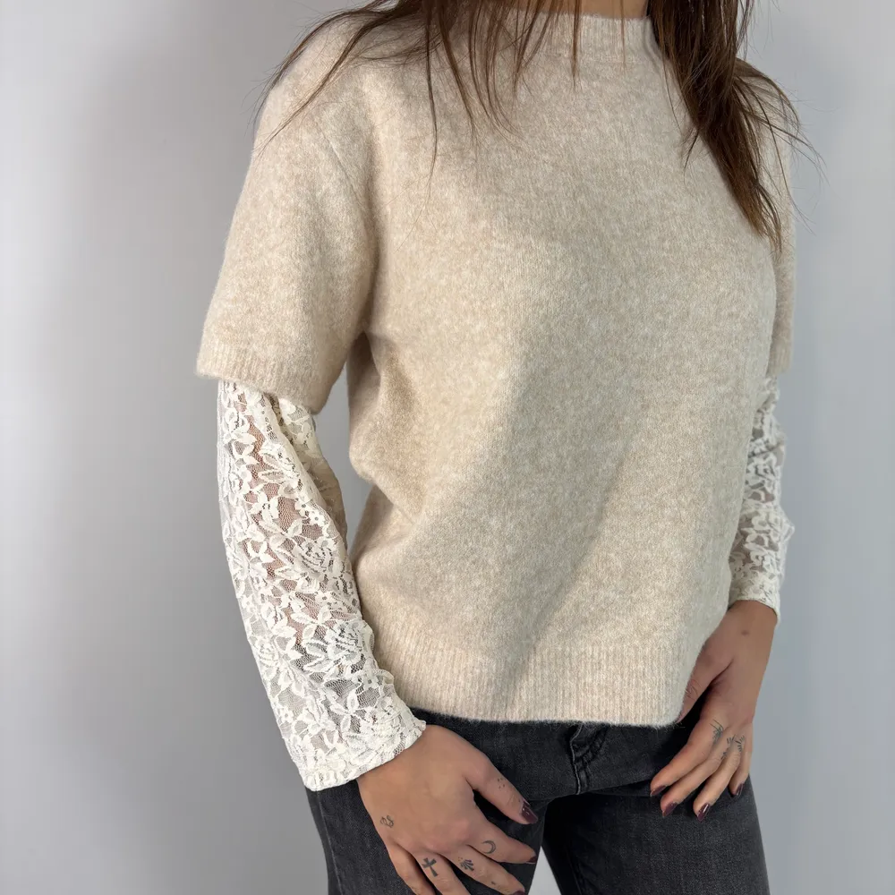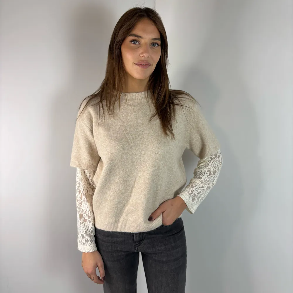 Maglia maniche in pizzo in tinta