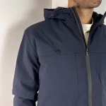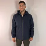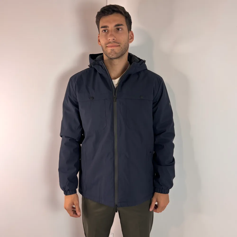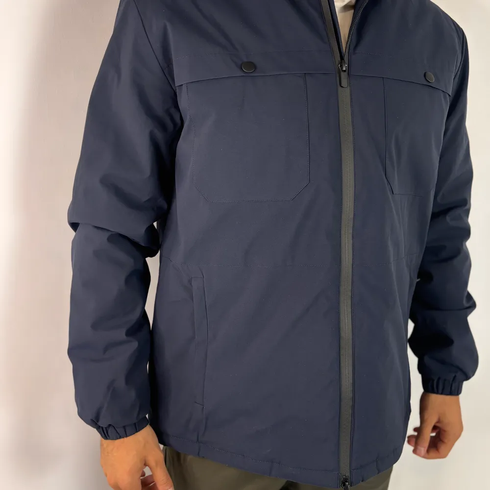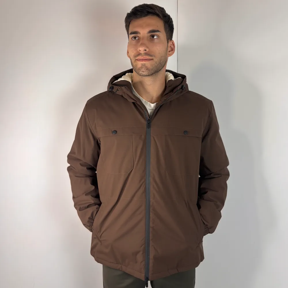Giubbotto con cappuccio. Chiusura con cerniera, trapuntato internamente