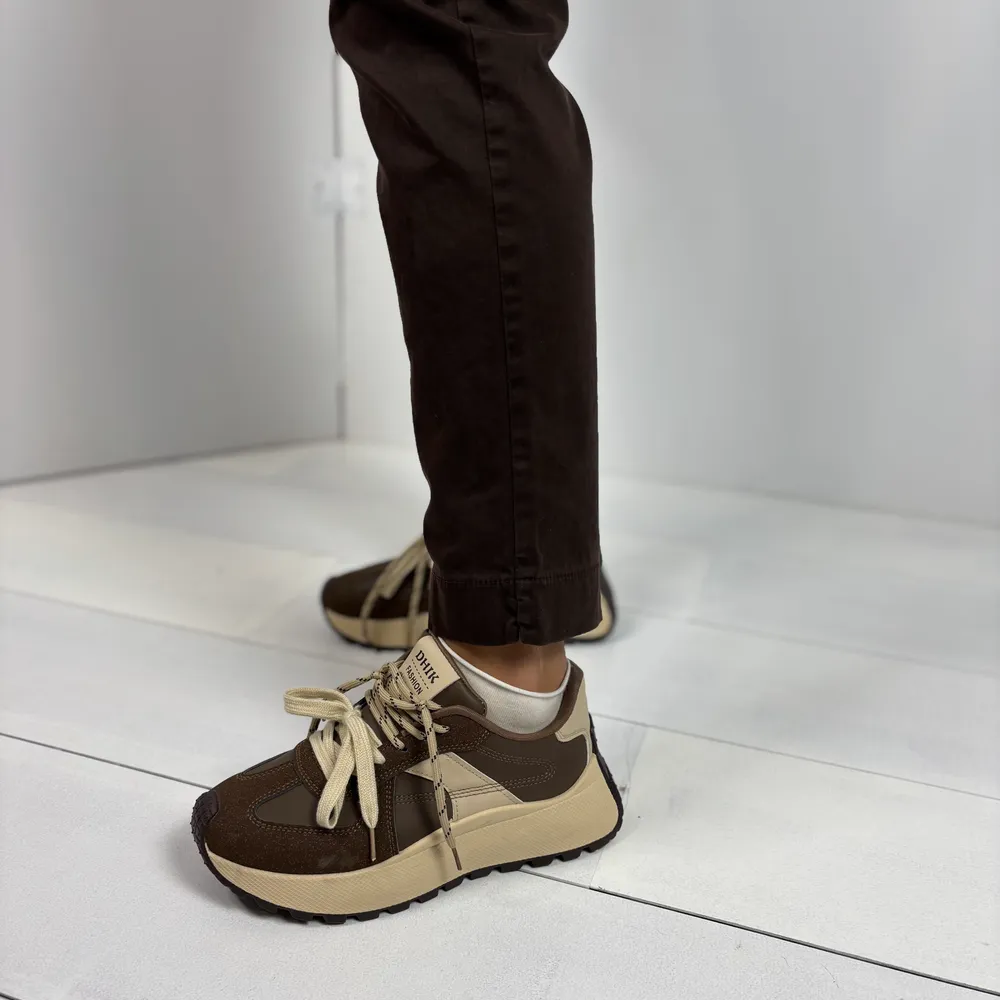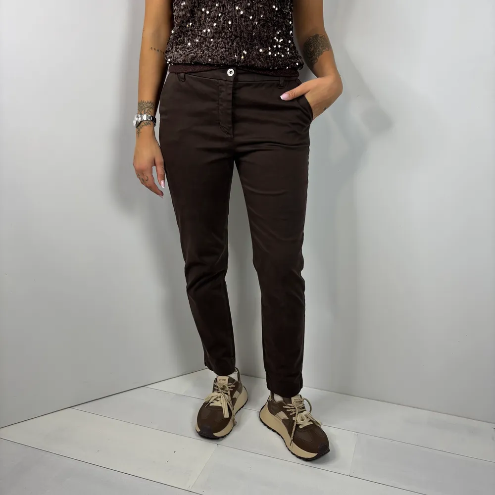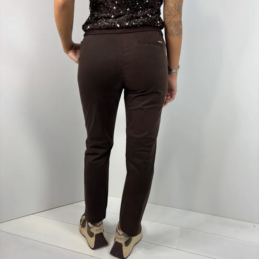 Pantalone con elastico laterale in vita. Tasche a filetto.