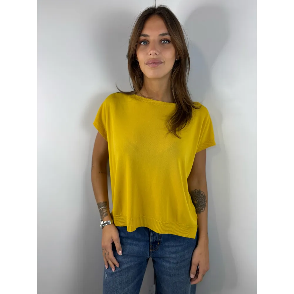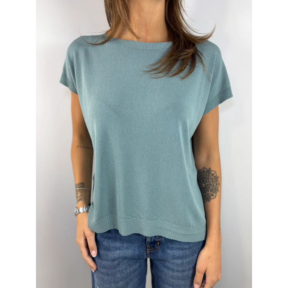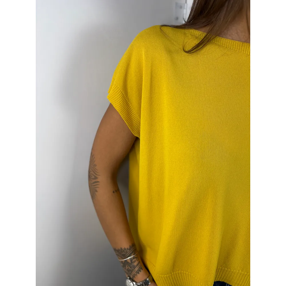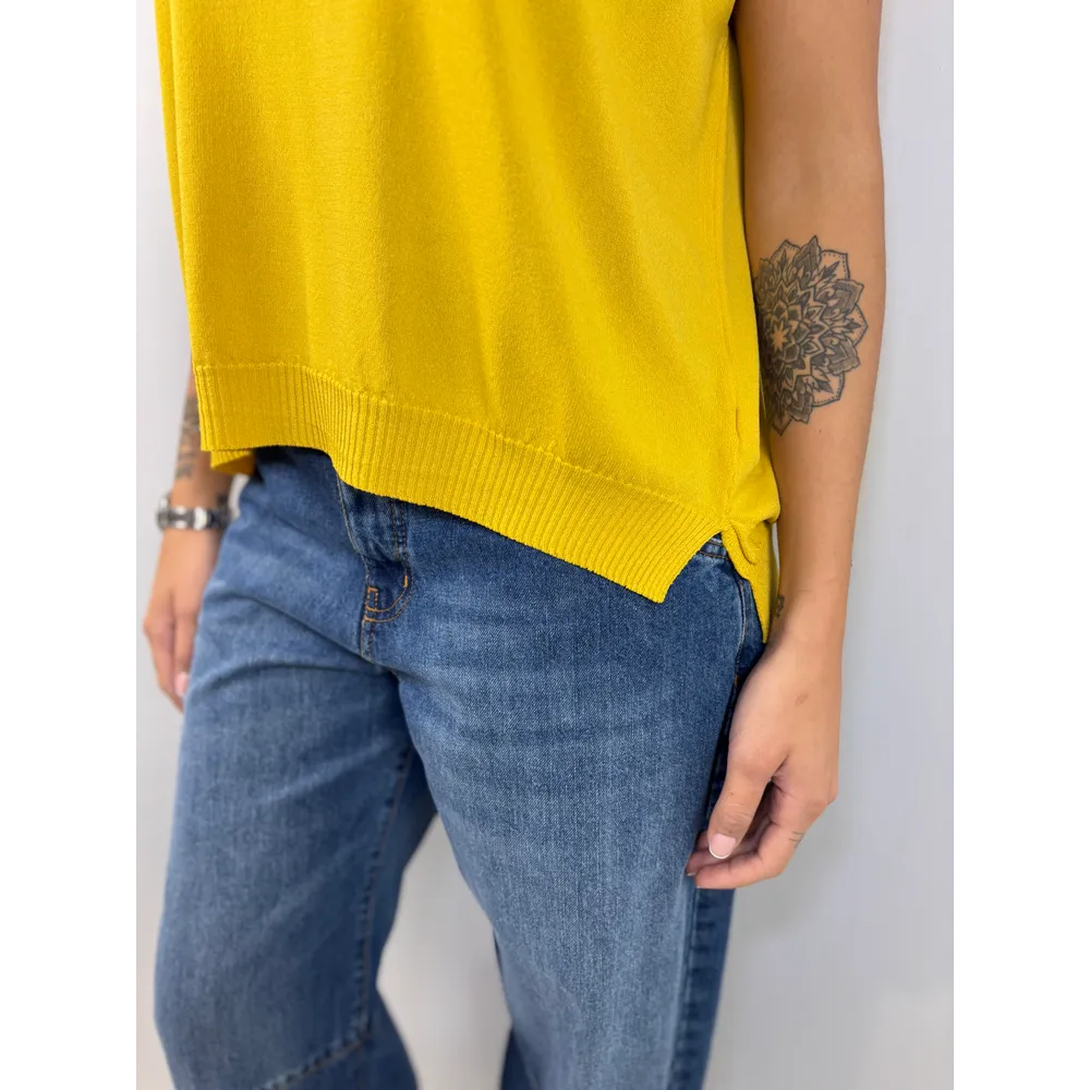 Maglia smanicata a scatoletta con spacchetti laterali in misto viscosa