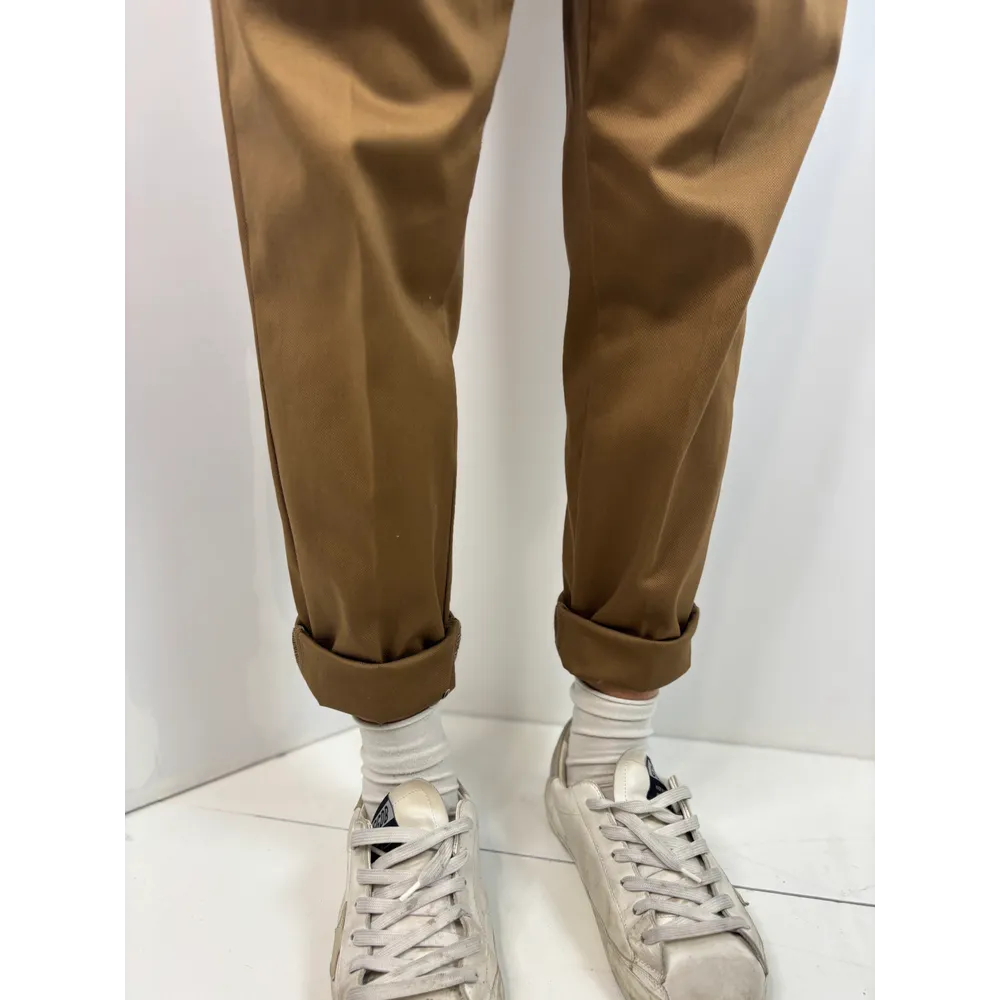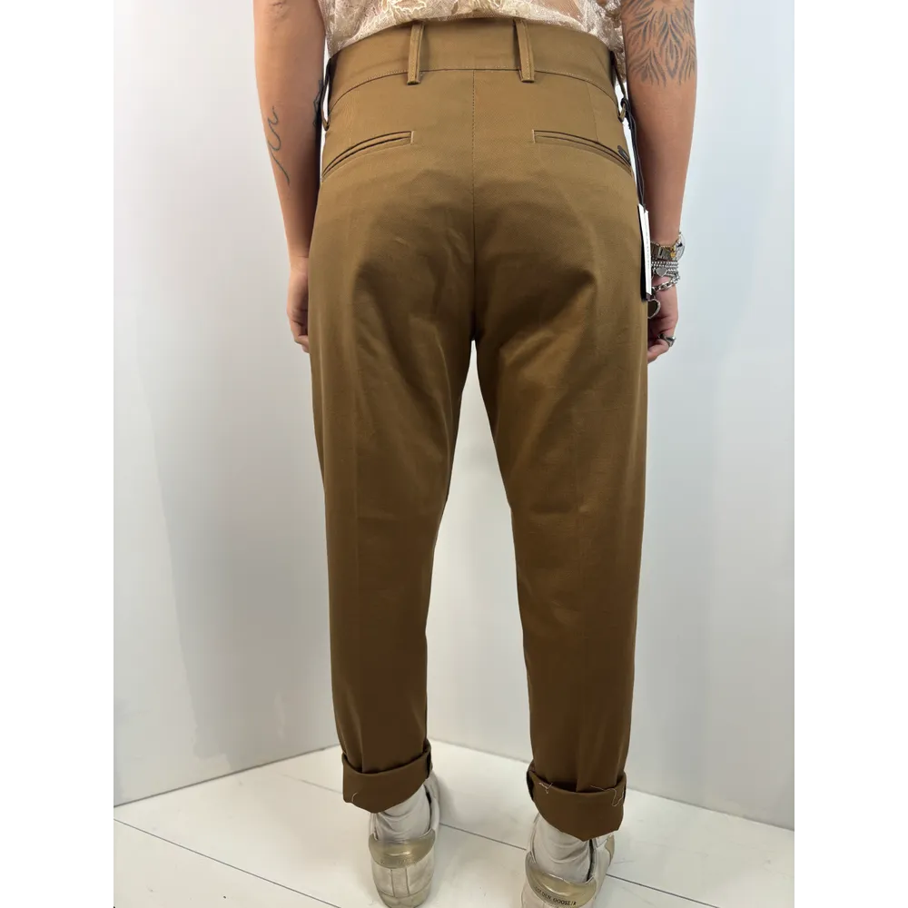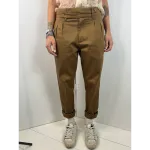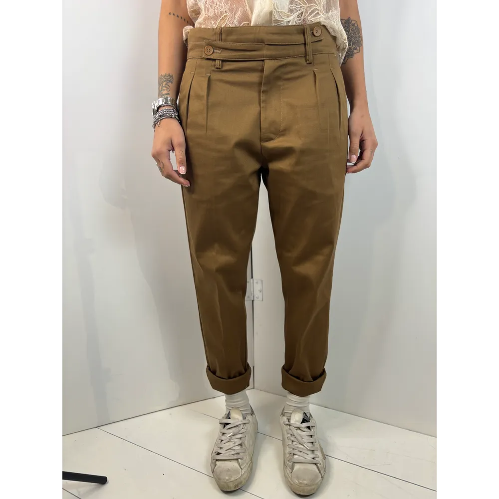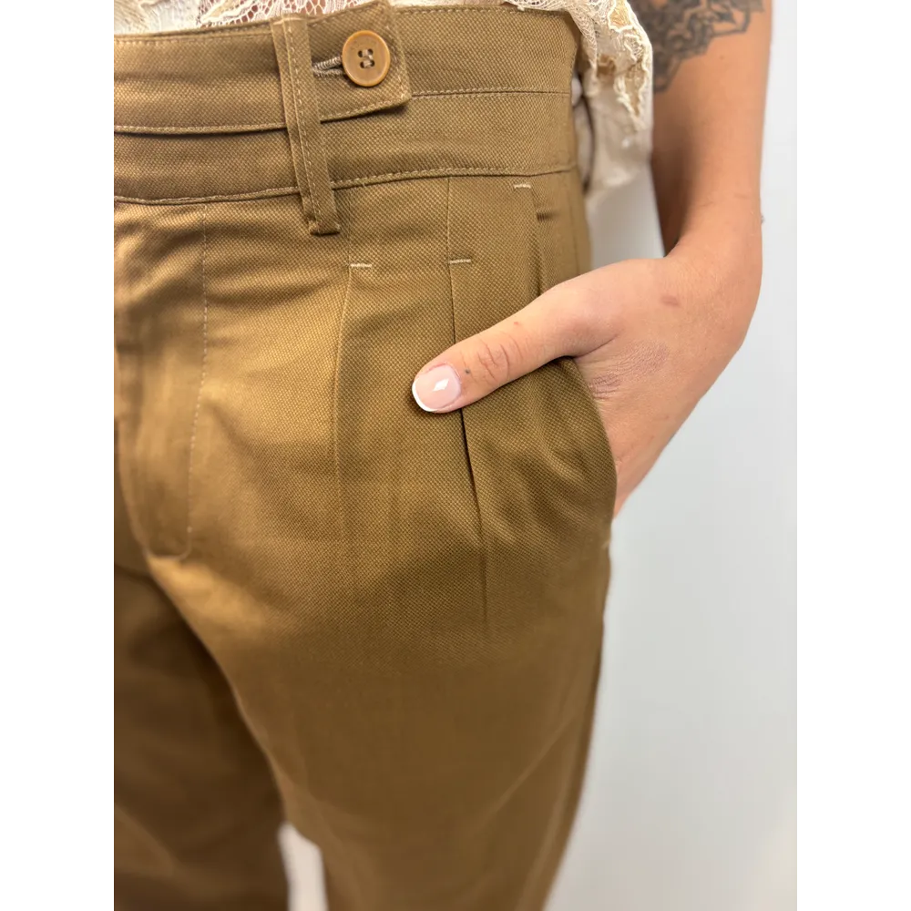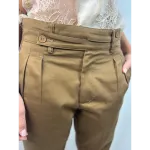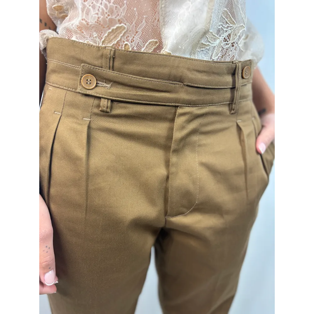 Pantalone a ovetto con pinces e abbottonatura particolare: