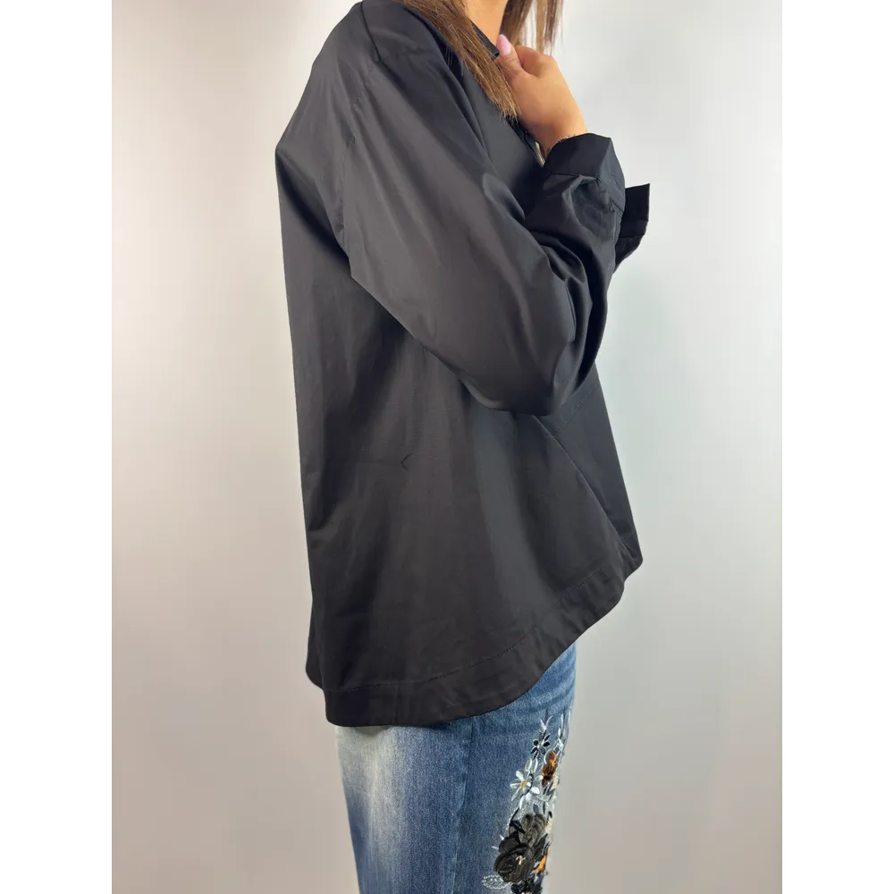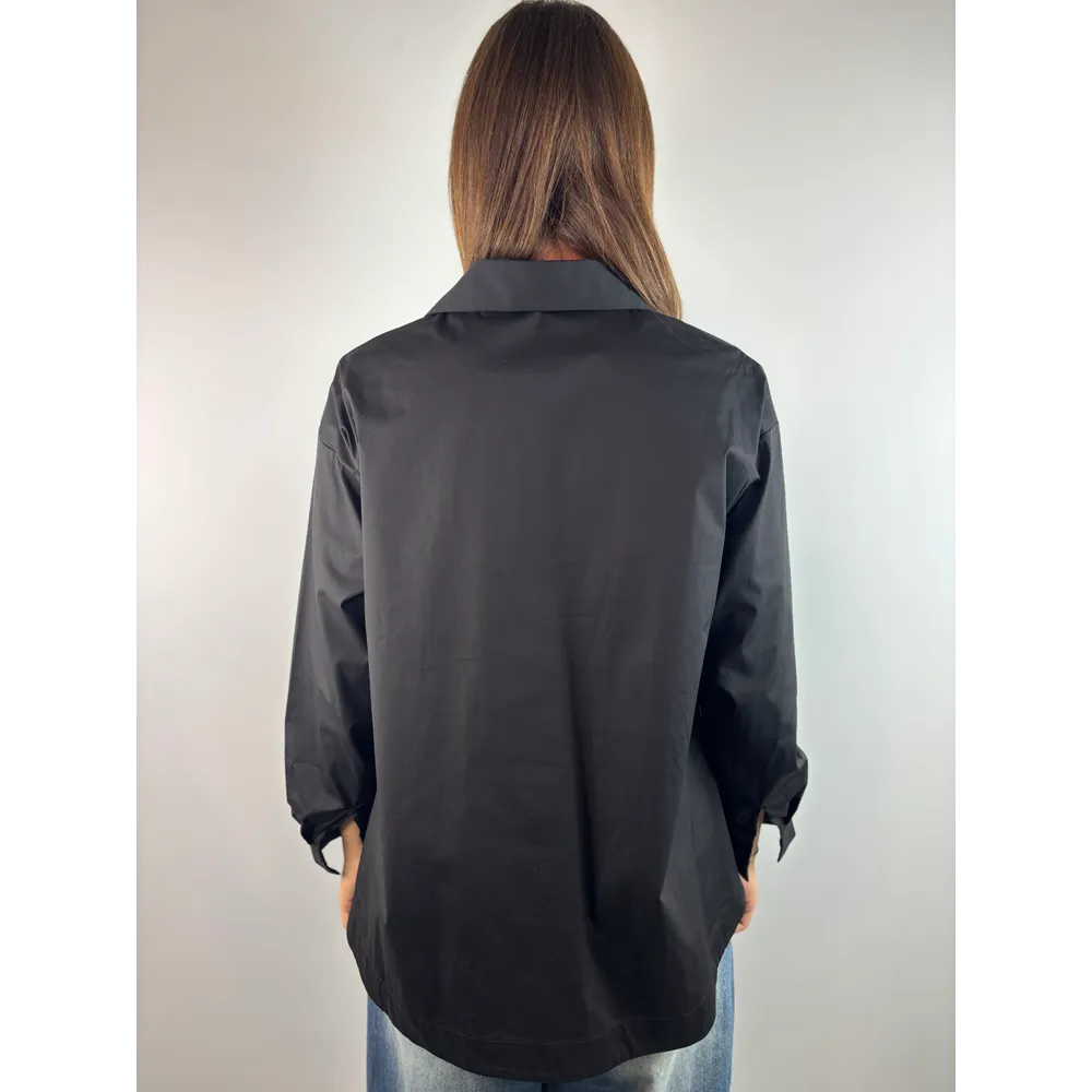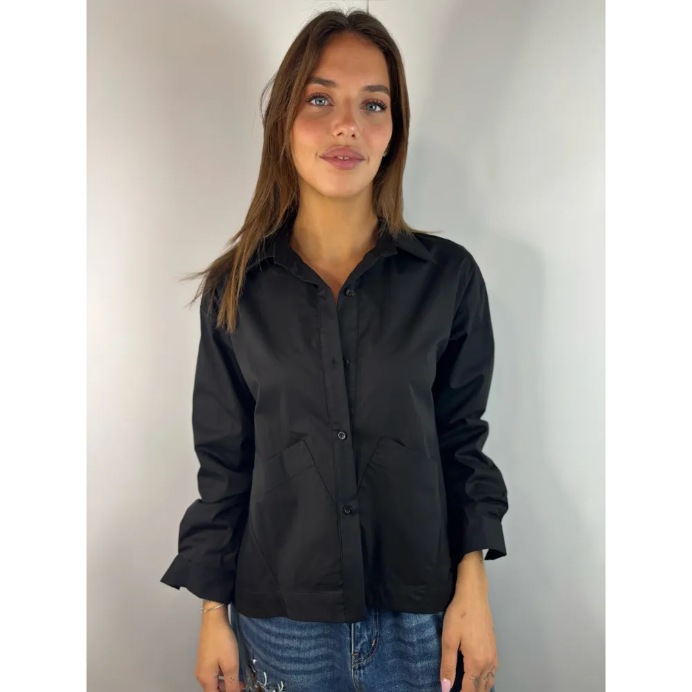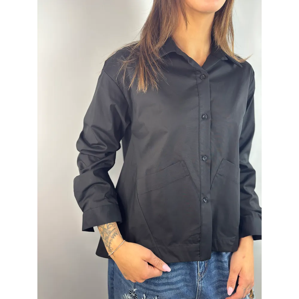Camicia a campana con tasche frontali e maniche lunghe.