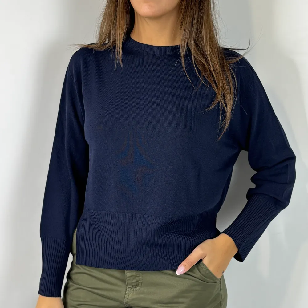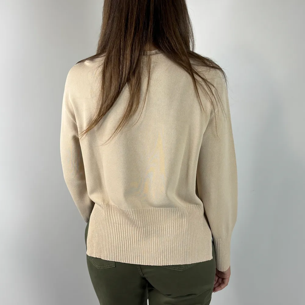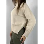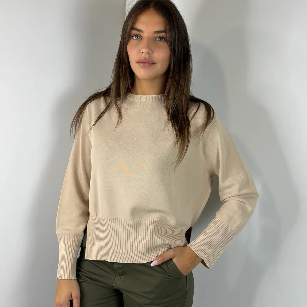Maglia girocollo fondo costa alta, spacchi laterali 65% viscosa