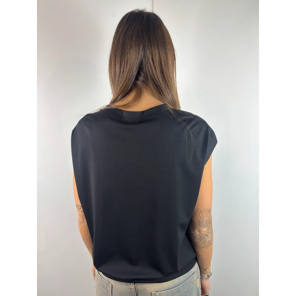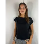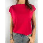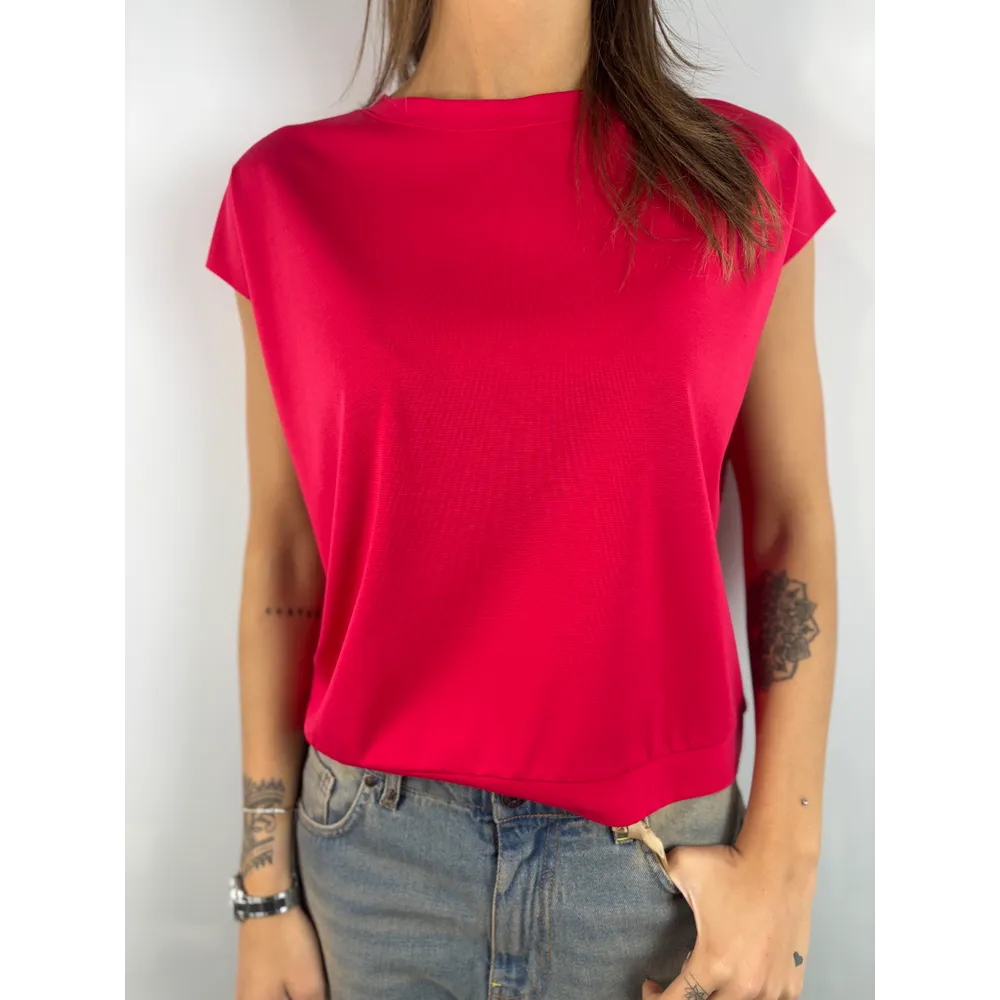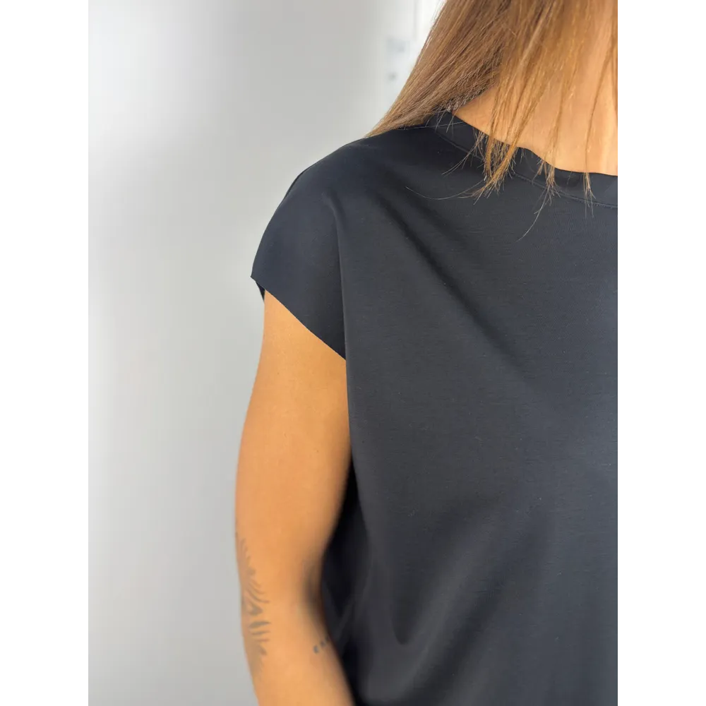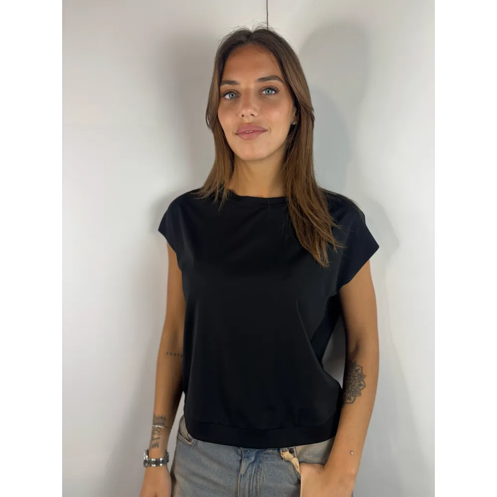 T-Shirt collo tondo ampia, maniche tagliate a vivo.