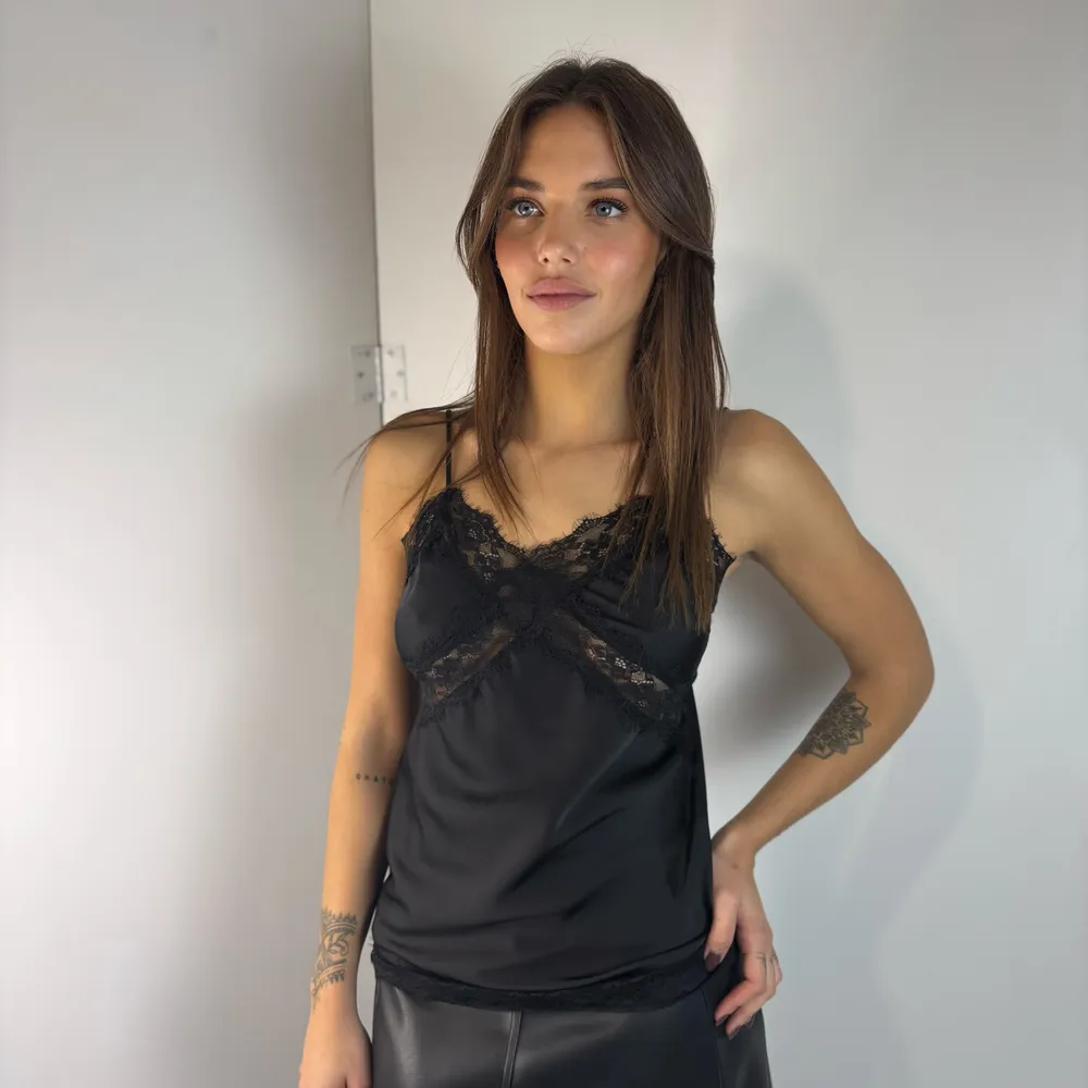 Top in satin con inserti in pizzo