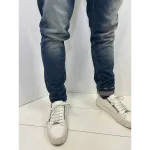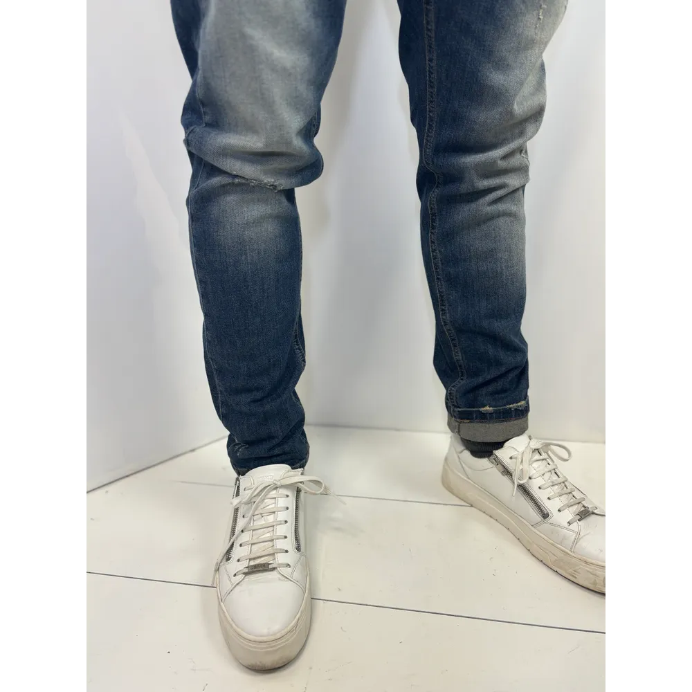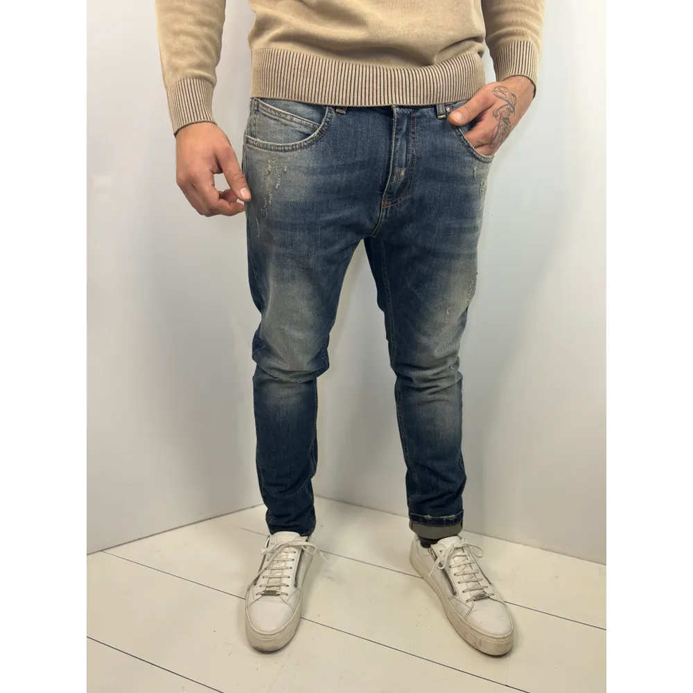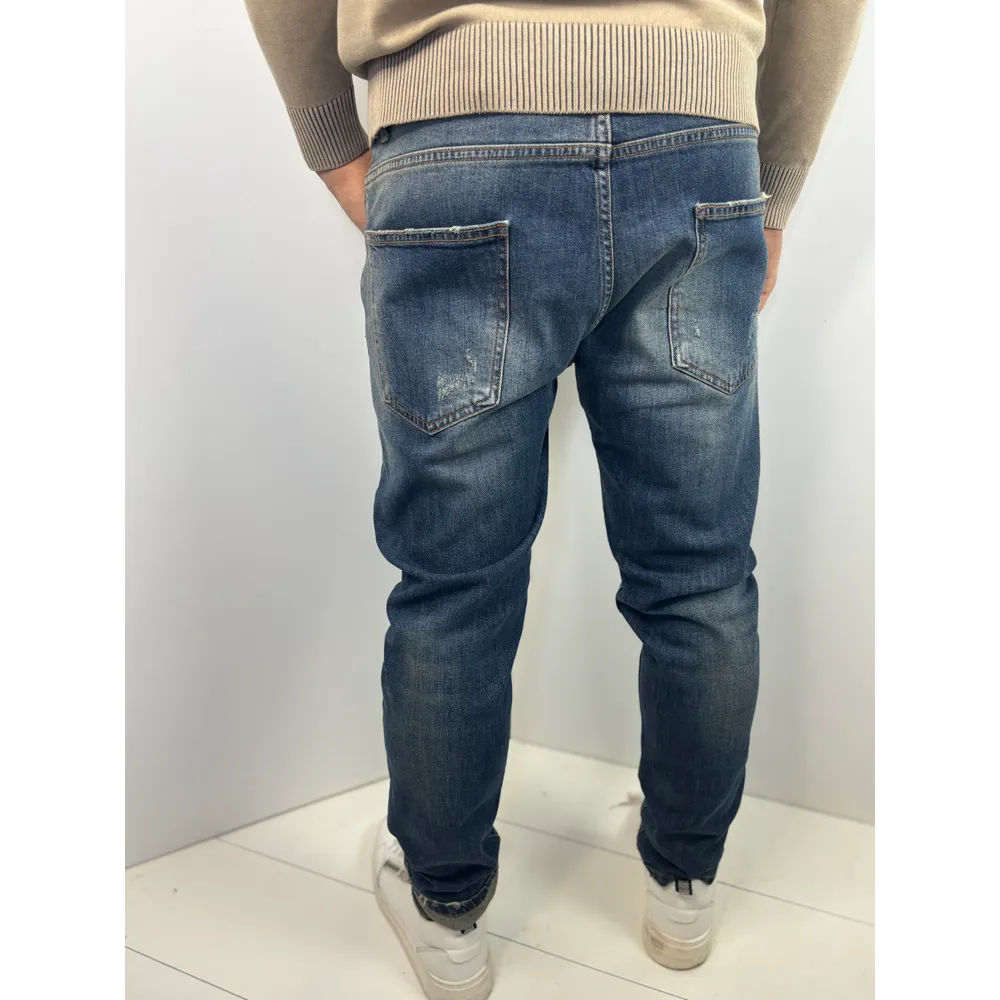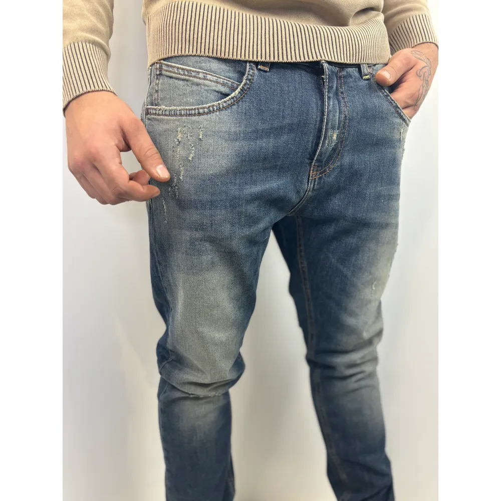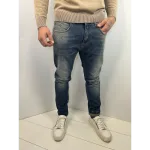 Jeans 5 tasche lavaggio medio con rotture cucite