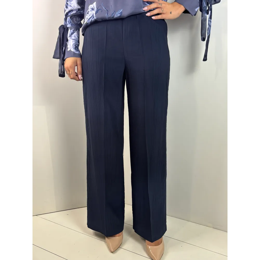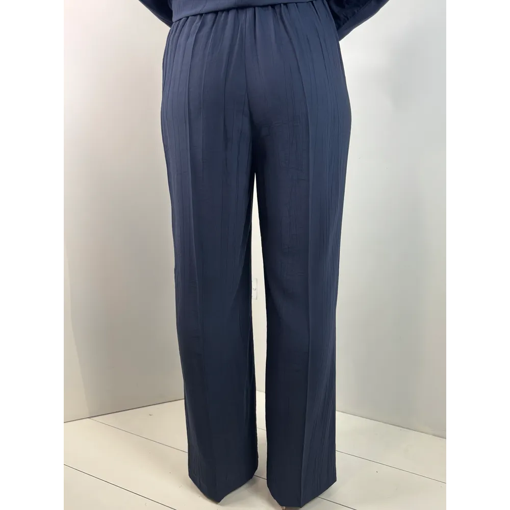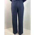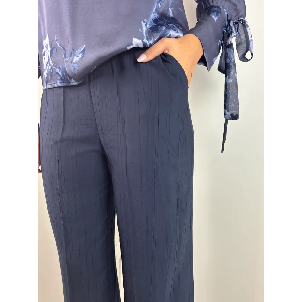 Pantalone a palazzo effetto stropicciato. Elastico in vita e tasche americane.