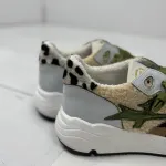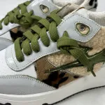 Sneakers con inserti pelliccia maculata , dettagli e lacci verdi .