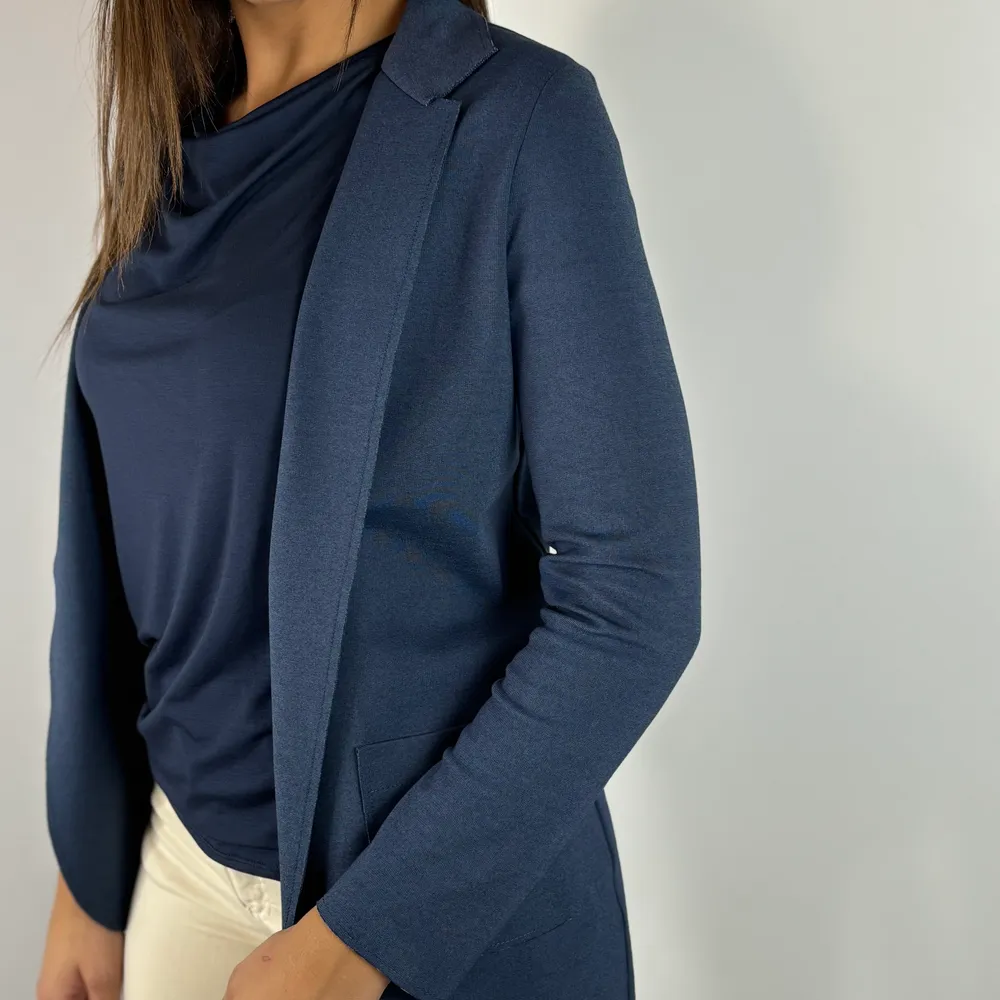 Giacca sfoderata taglio vivo misto viscosa.