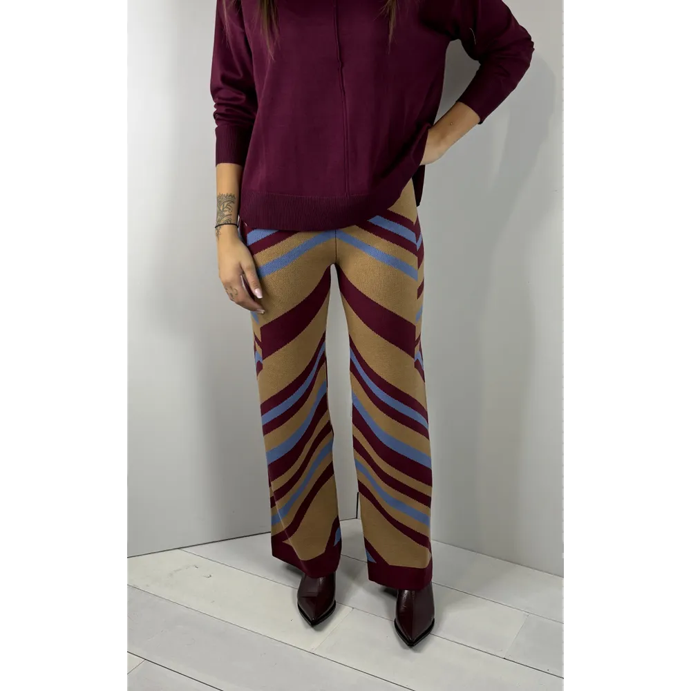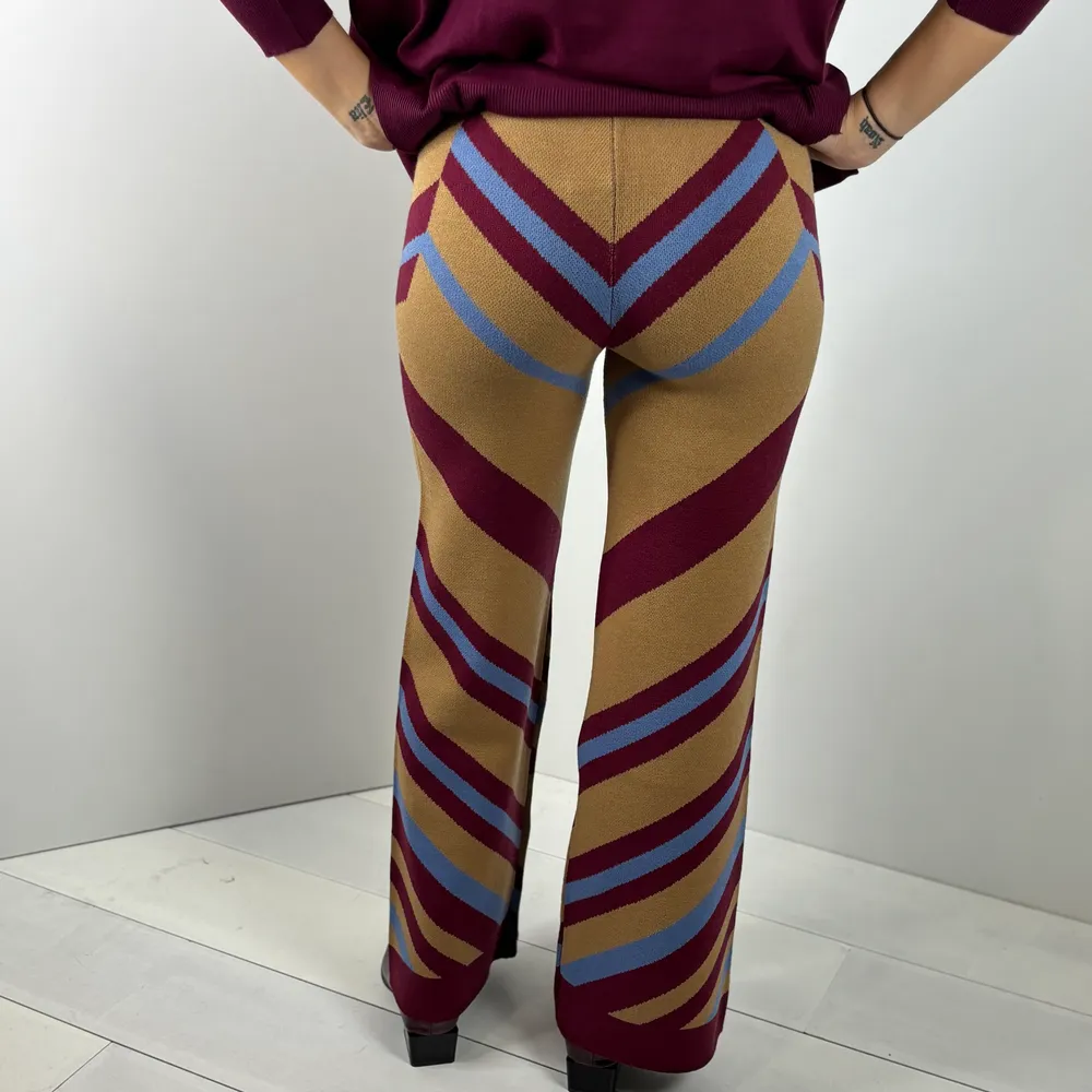 Pantalone in maglia fantasia geometrica. Elastico in vita.