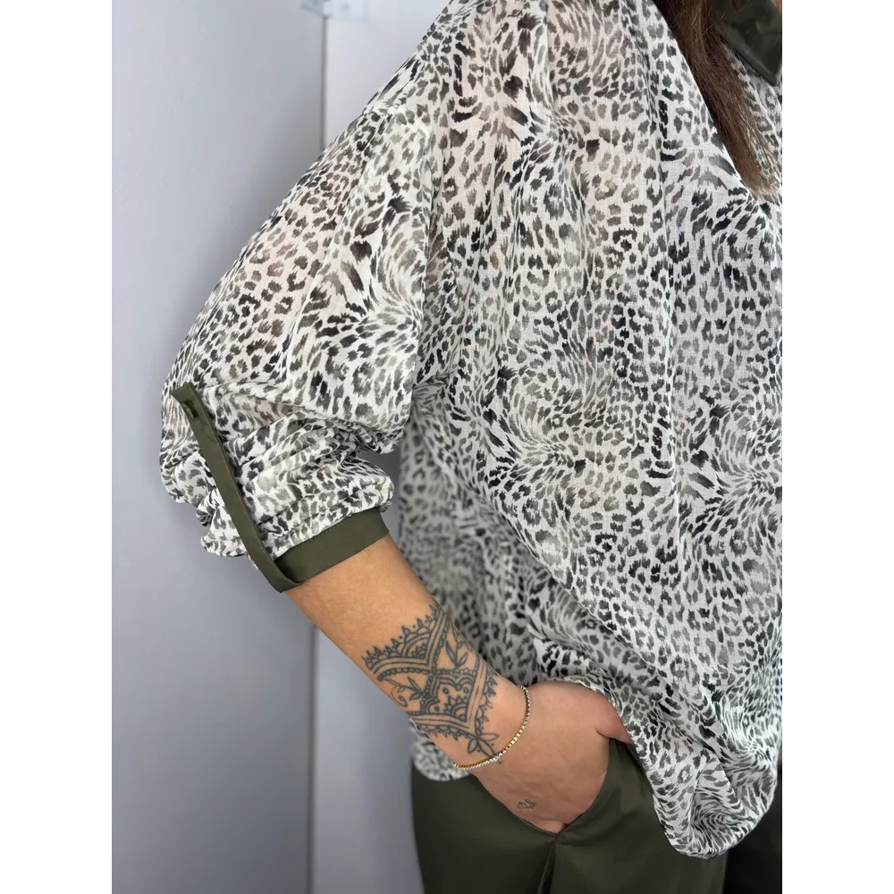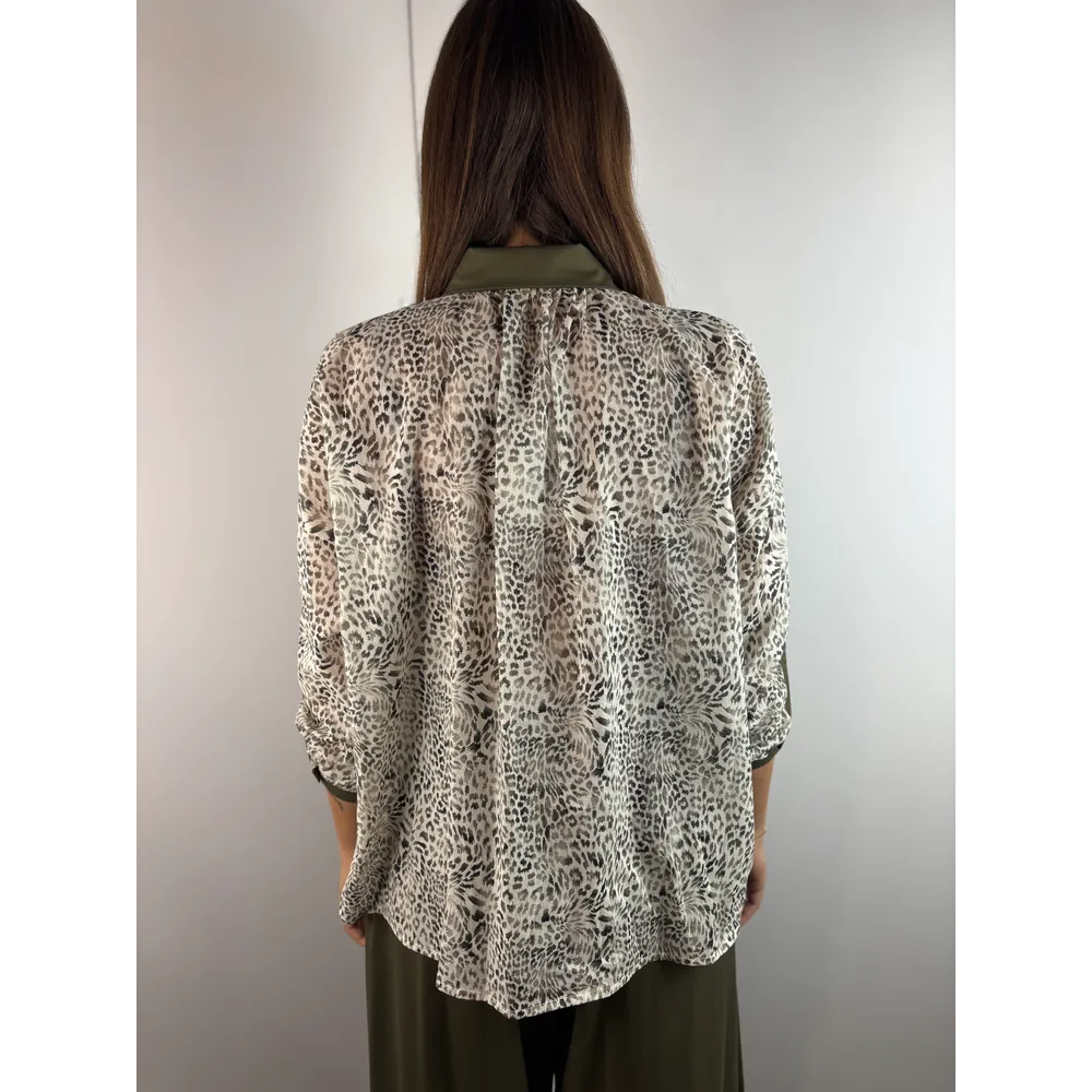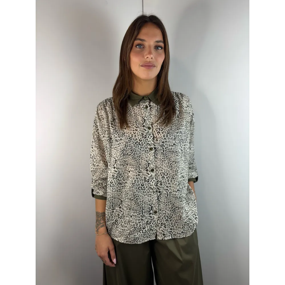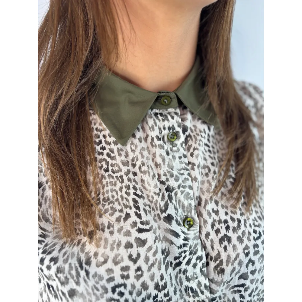 Camicia fantasia avorio/ verde salvia. Polsini e colletto tinta unita.