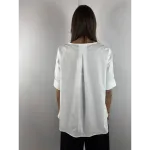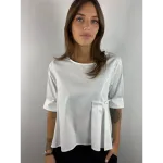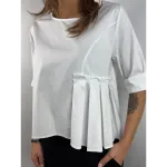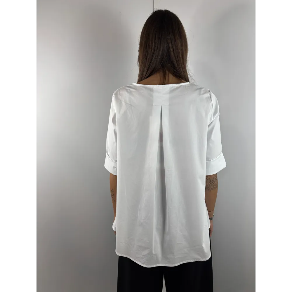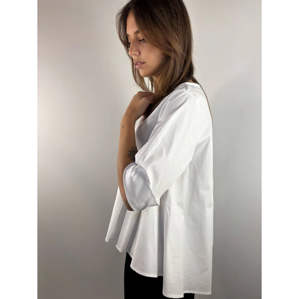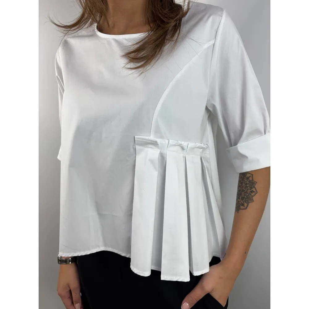 Camicia corta sul davanti e lunga dietro con pieghe su un lato.
