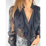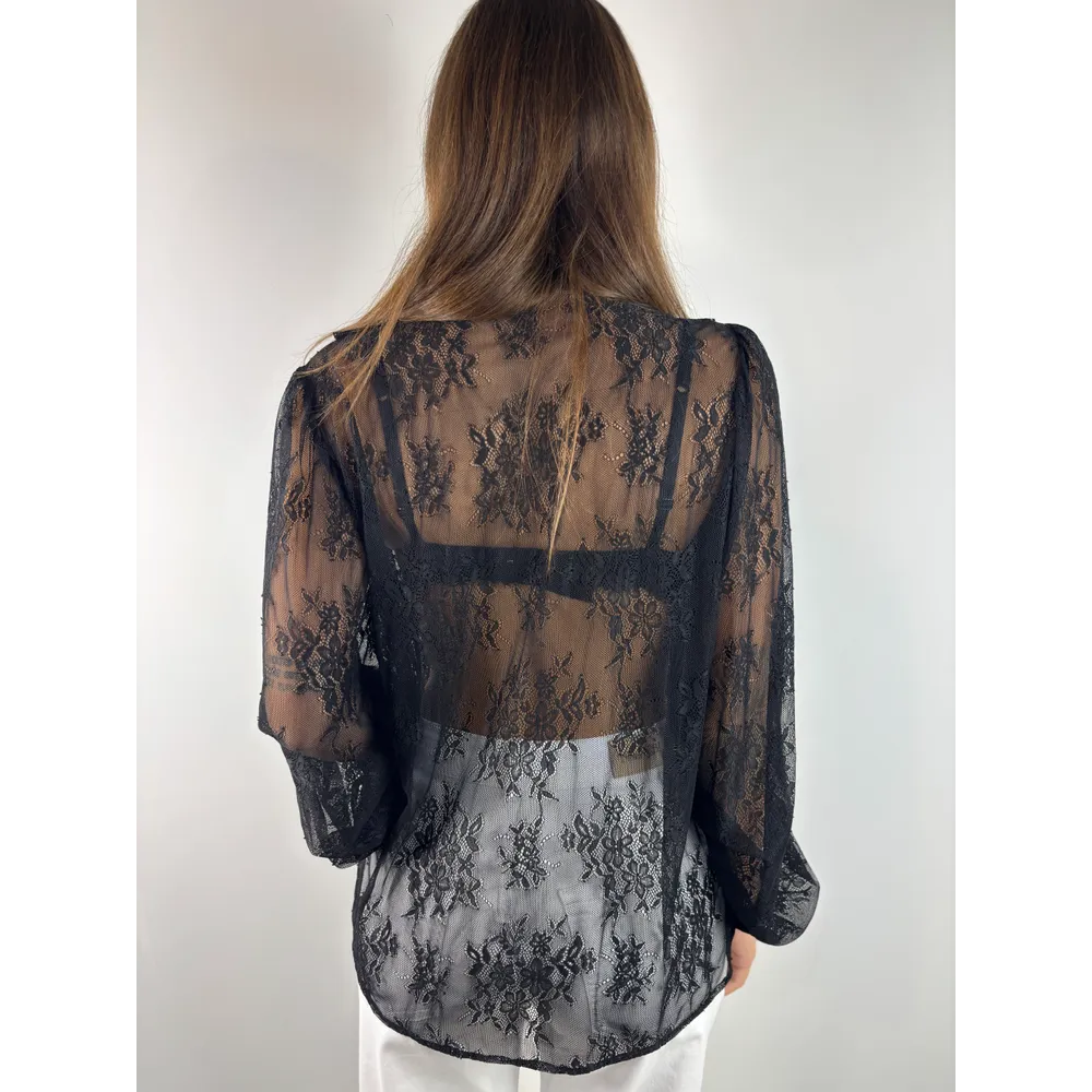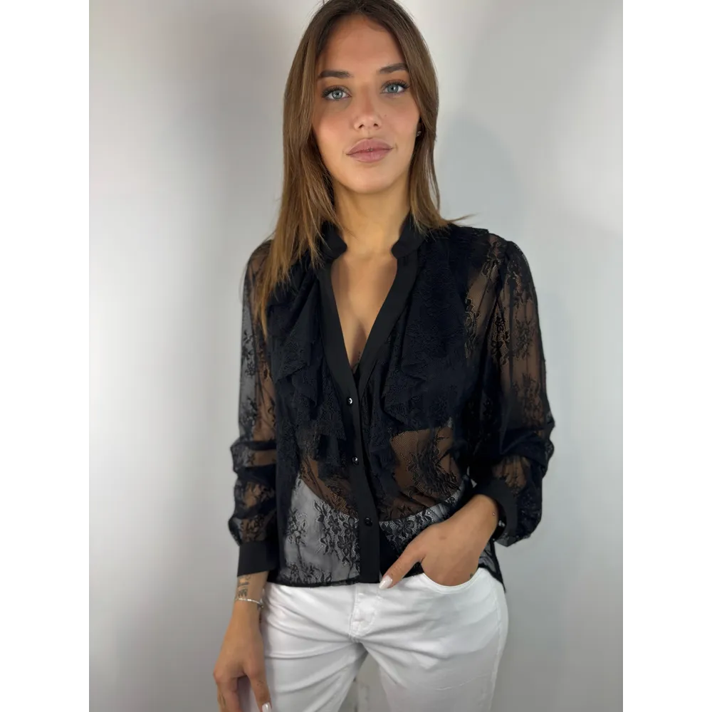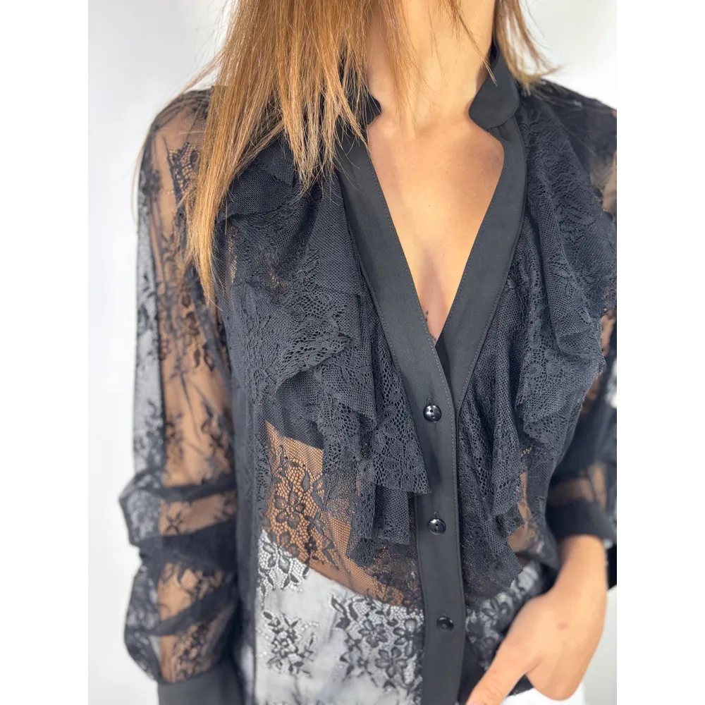 Camicia in pizzo nero con rouches