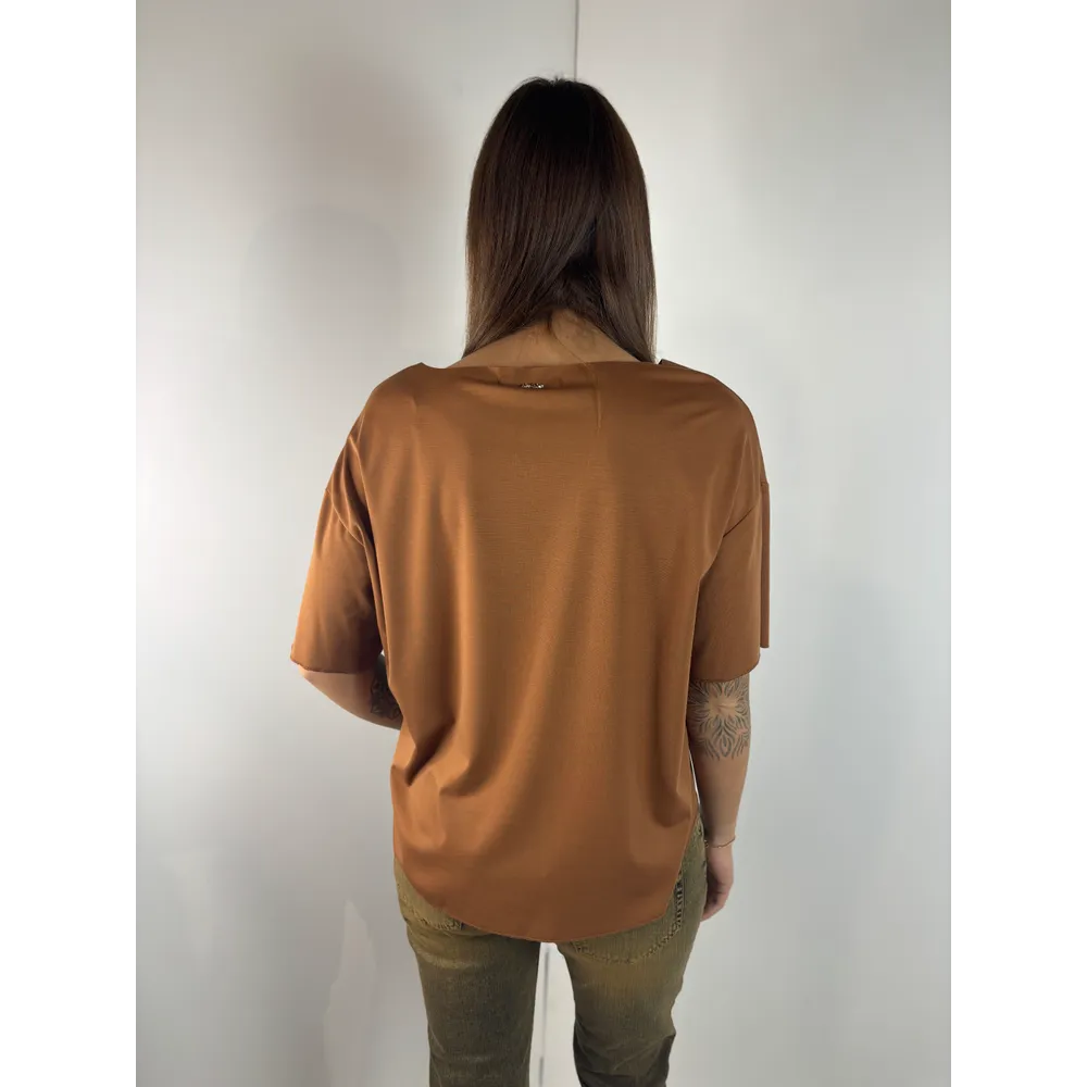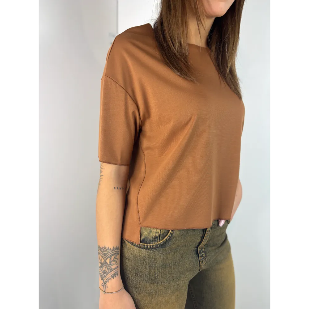 T-Shirt scollo barca taglio vivo.