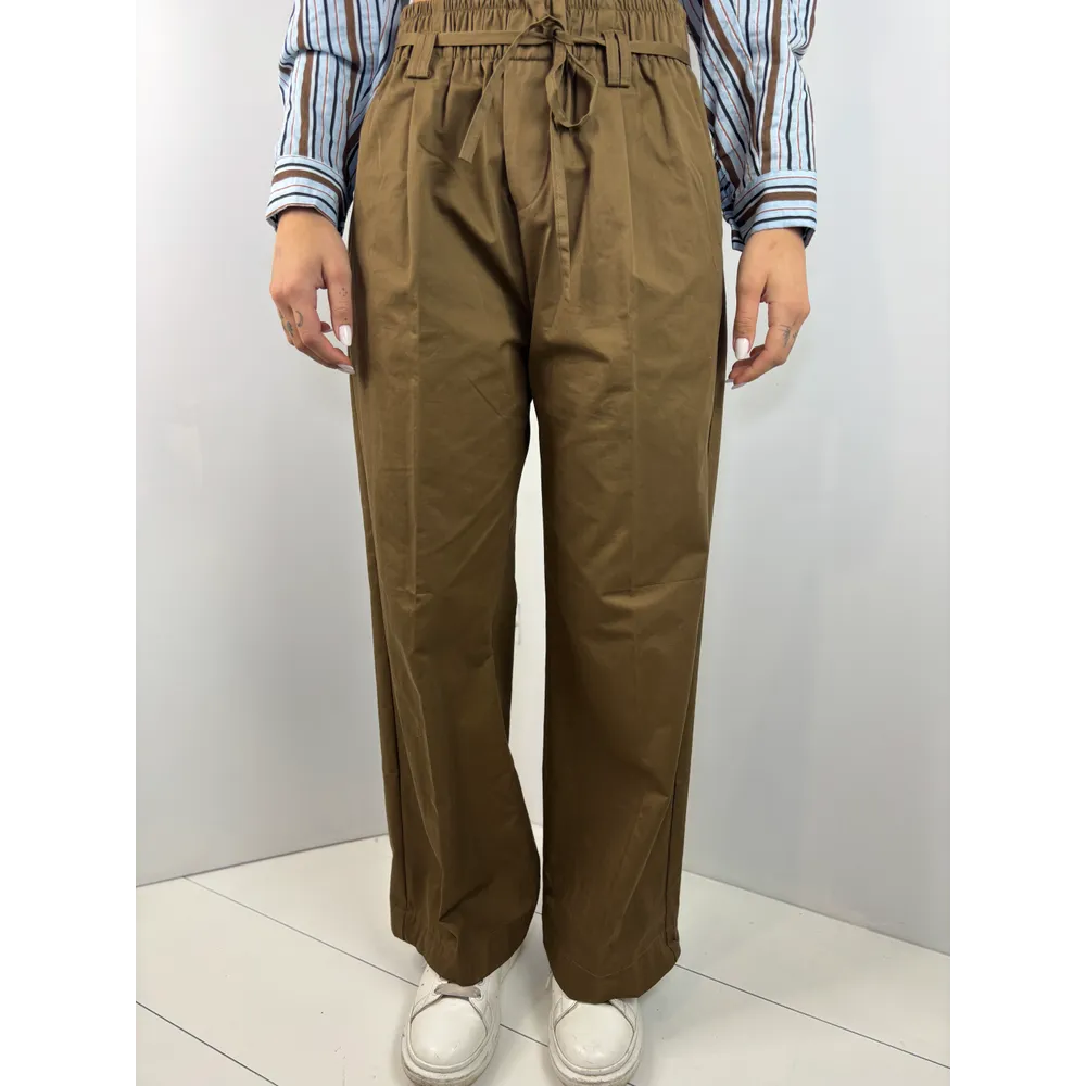 Pantalone in cotone con elastico in vita e coulisse