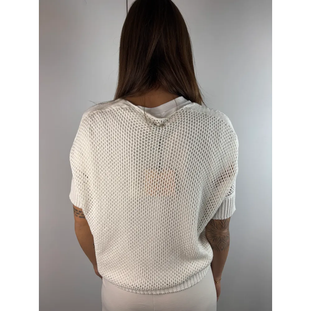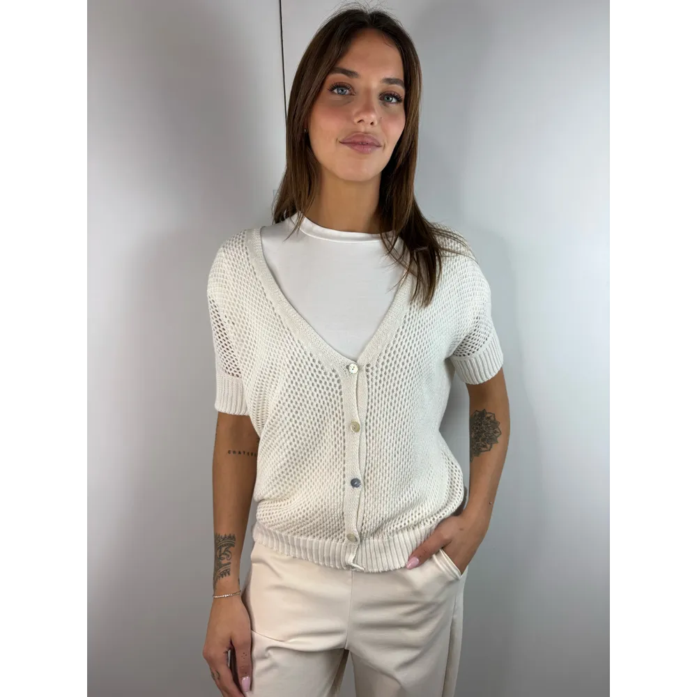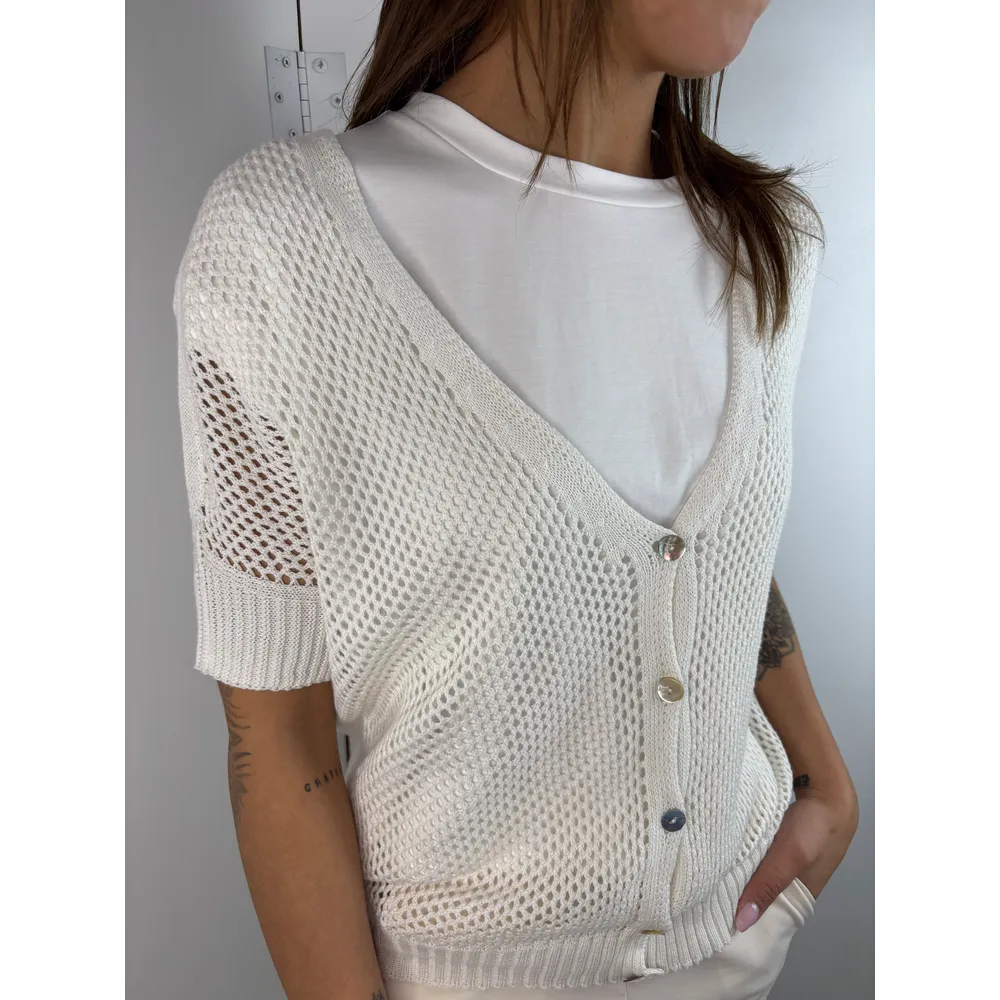Cardigan micro rete mezze maniche con bottoni.