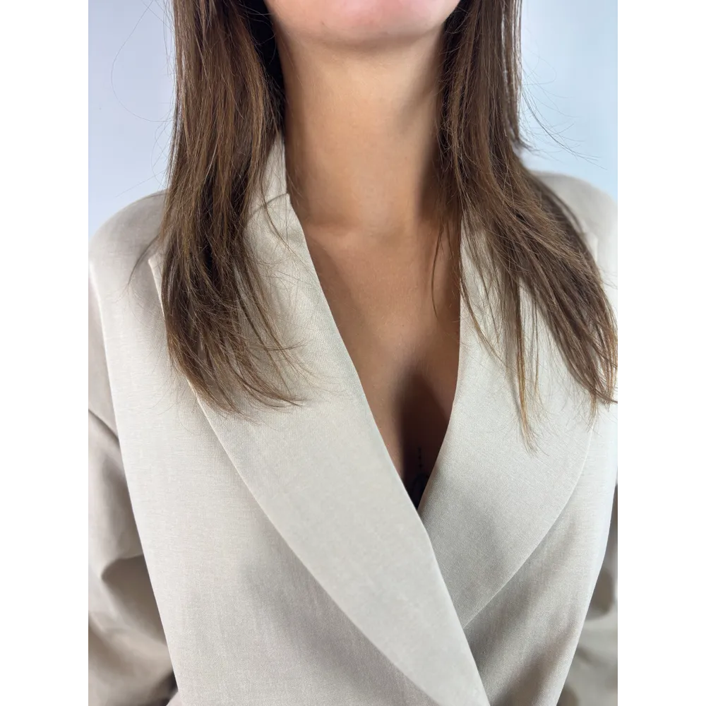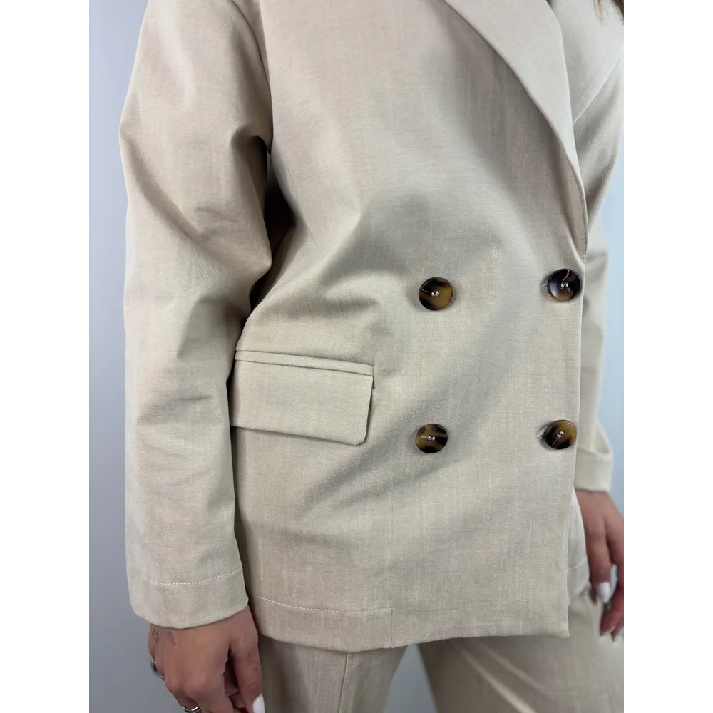 Giacca doppiopetto over, ha un tessuto elasticizzato. 53% CO 38%O 9%EA