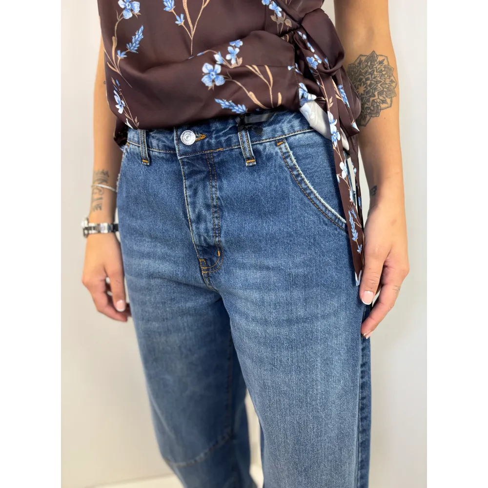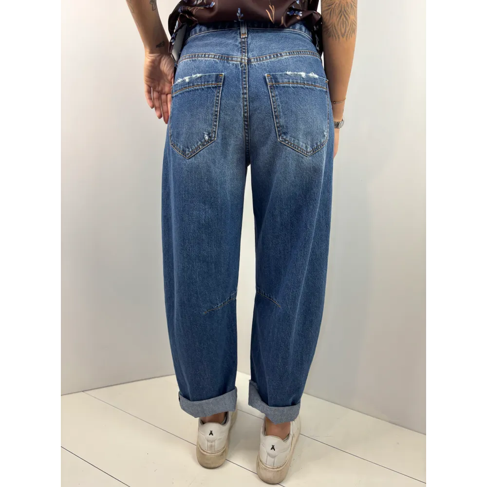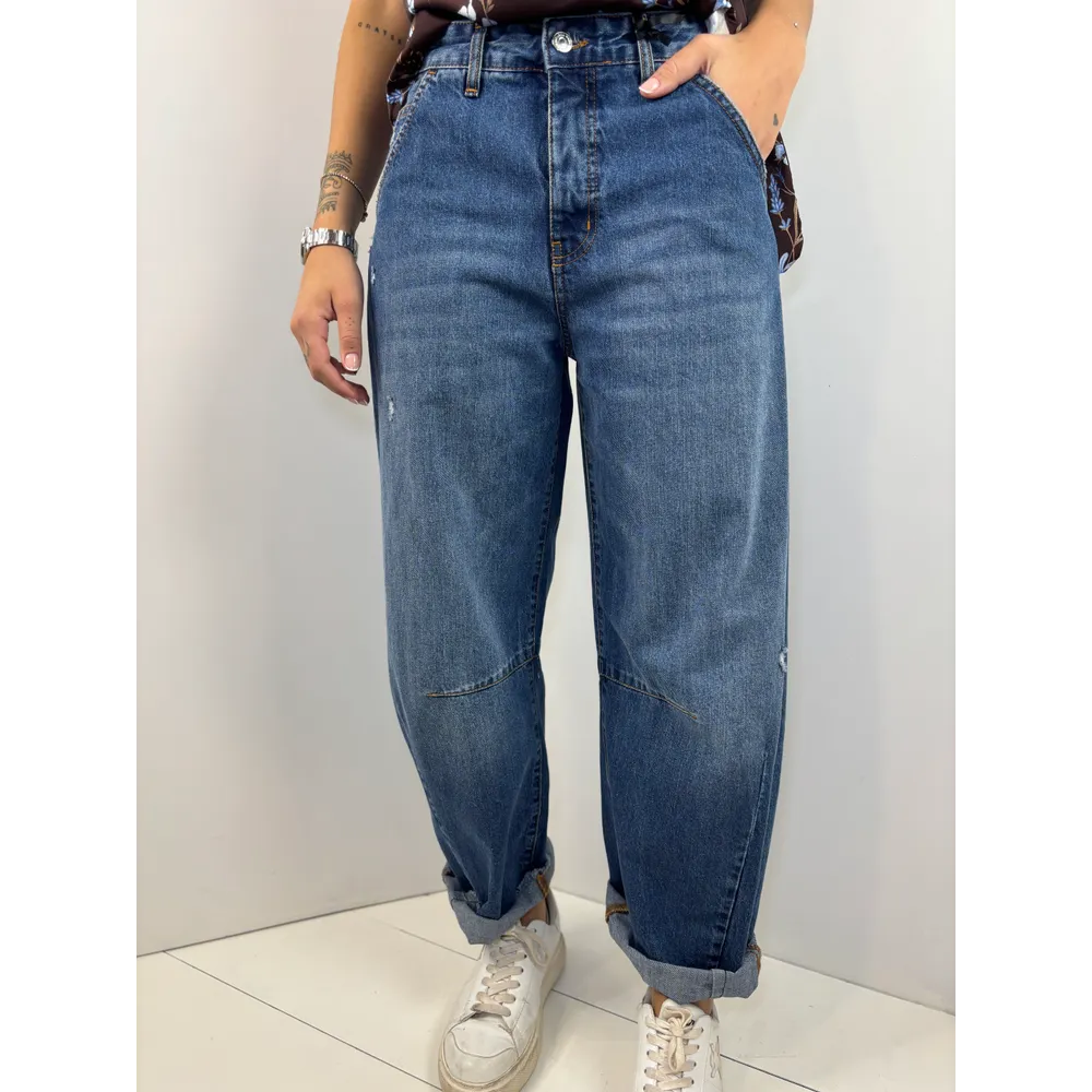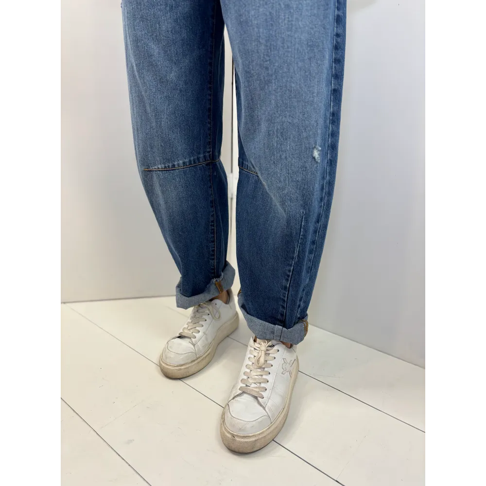 Jeans baloon lavaggio medio con qualche piccola rottura.