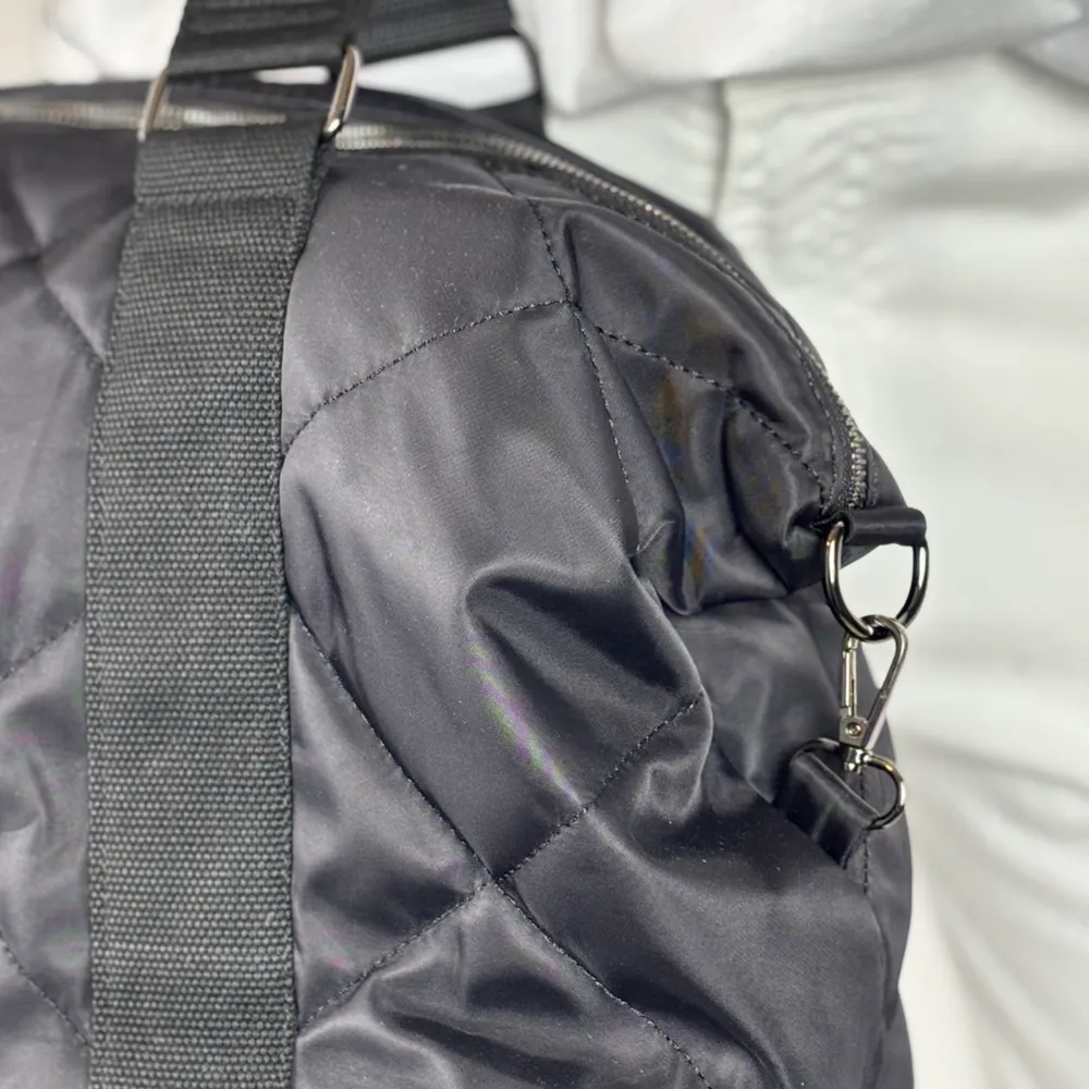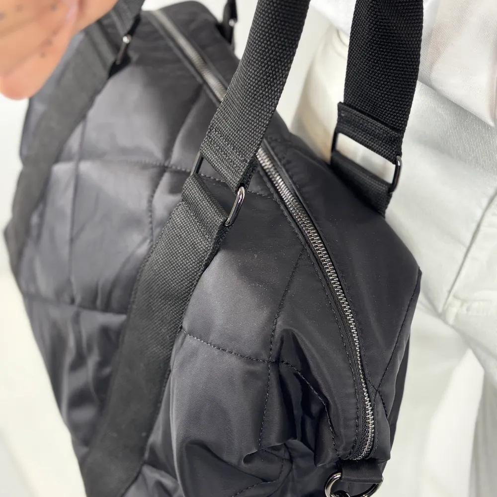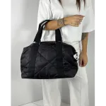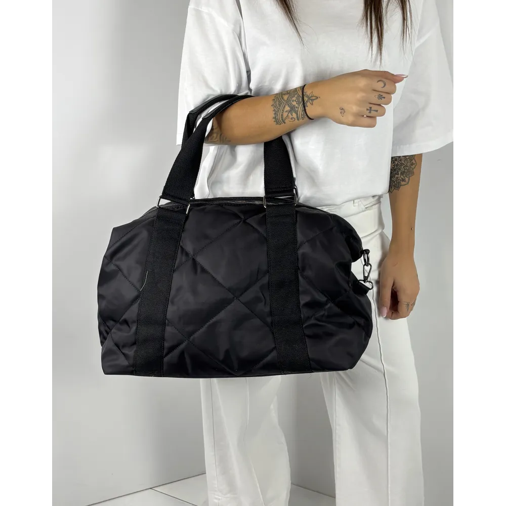 Borsa Boston in tessuto nero con manici e tracolla.
