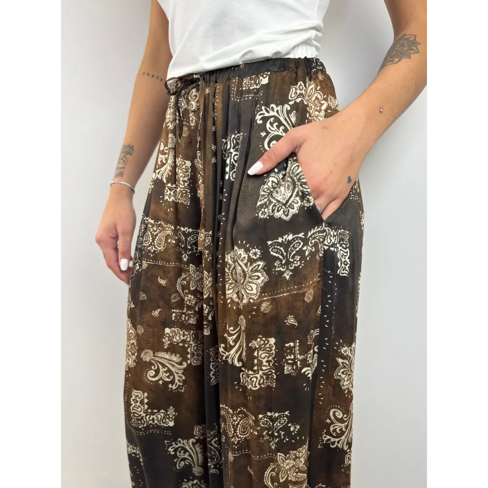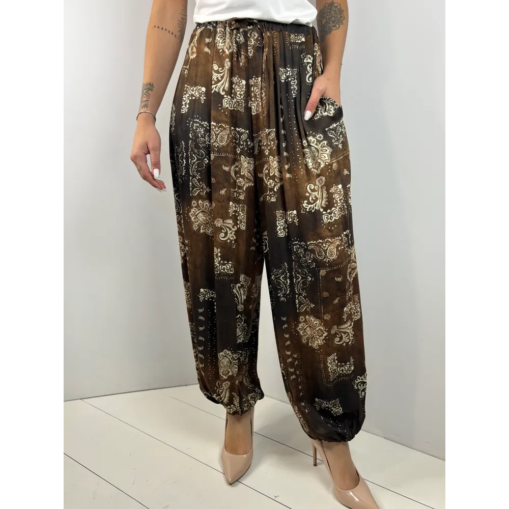 Pantalone fantasia con elastico sulla caviglia.