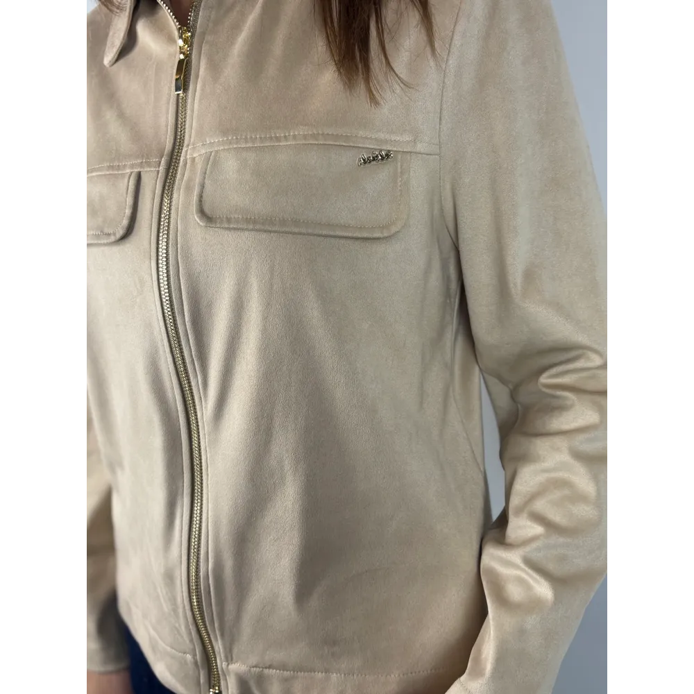 Giacca suede con tasche e zip.