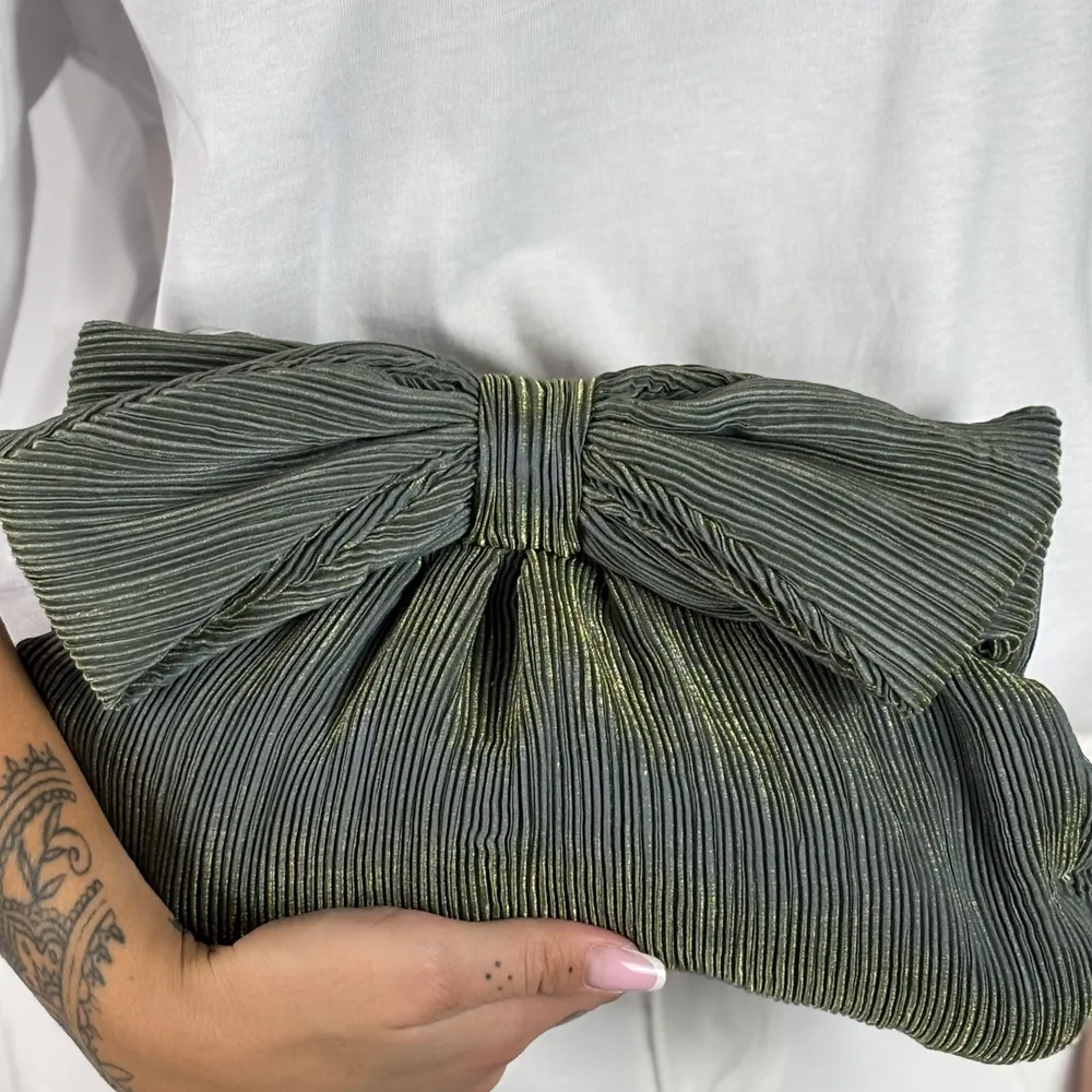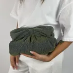 Borsa in tessuto plissettato con fiocco e tracolla