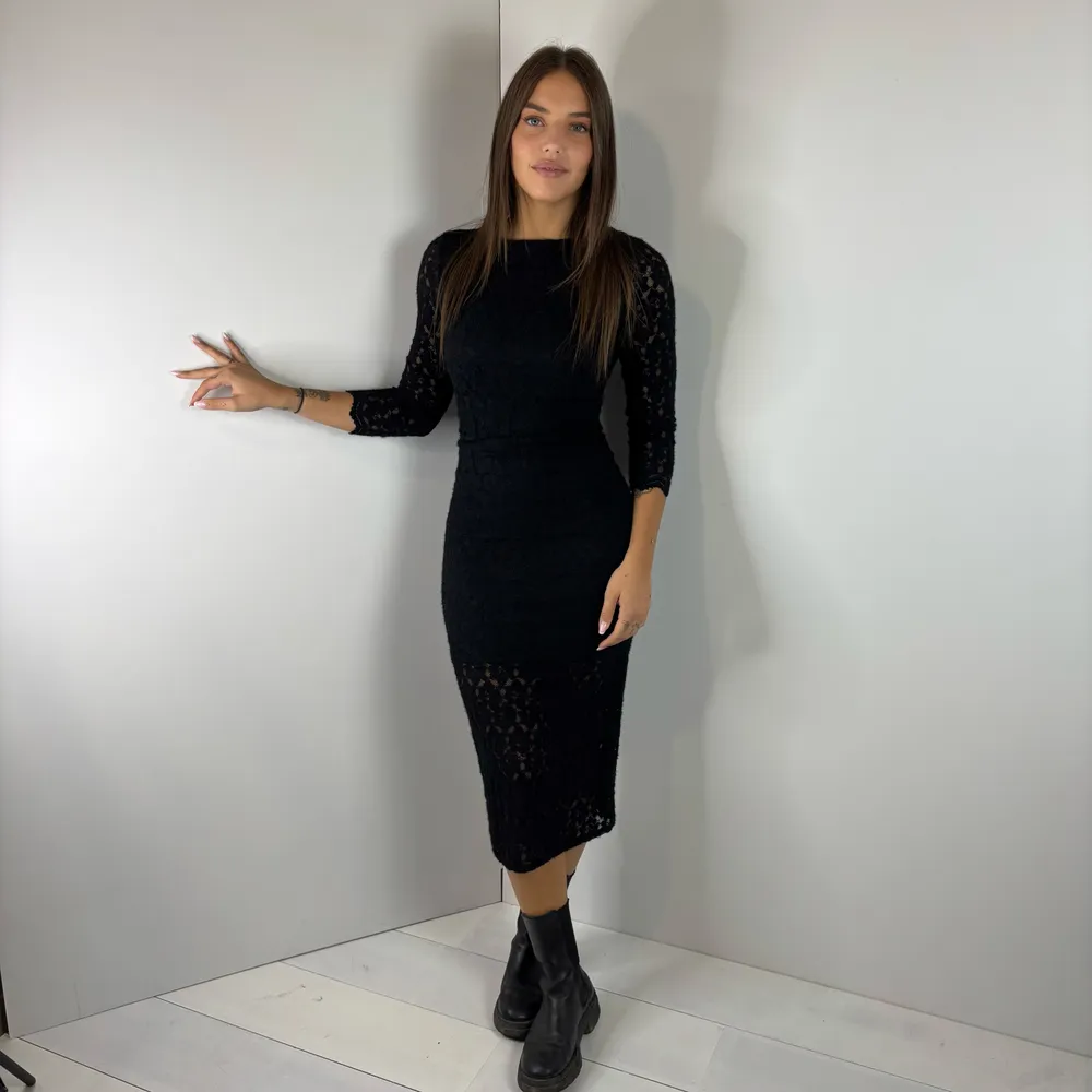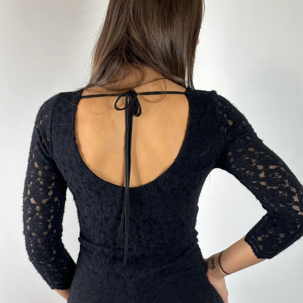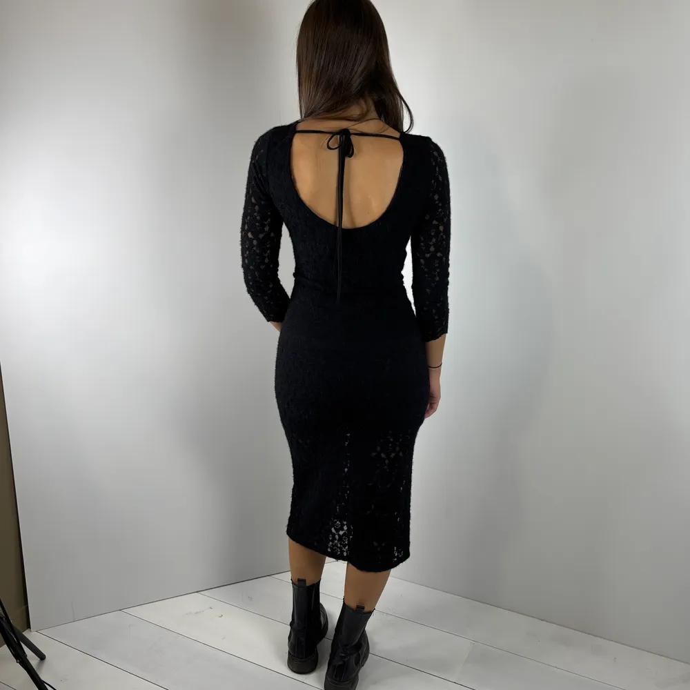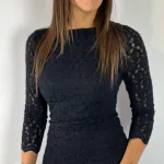 Abito scollo a barca, più profondo sulla schiena in pizzo garzato.