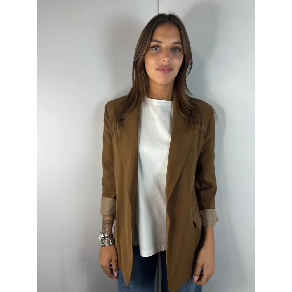 Giacca morbida un bottone, foderata solo su maniche, tasche finte