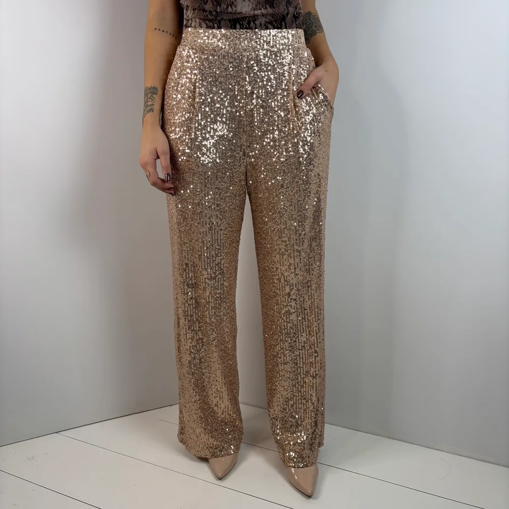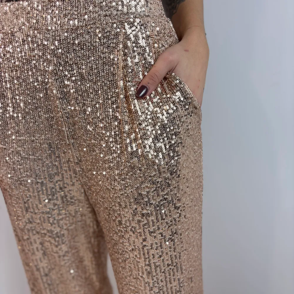 Pantaloni pajette oro/rosa