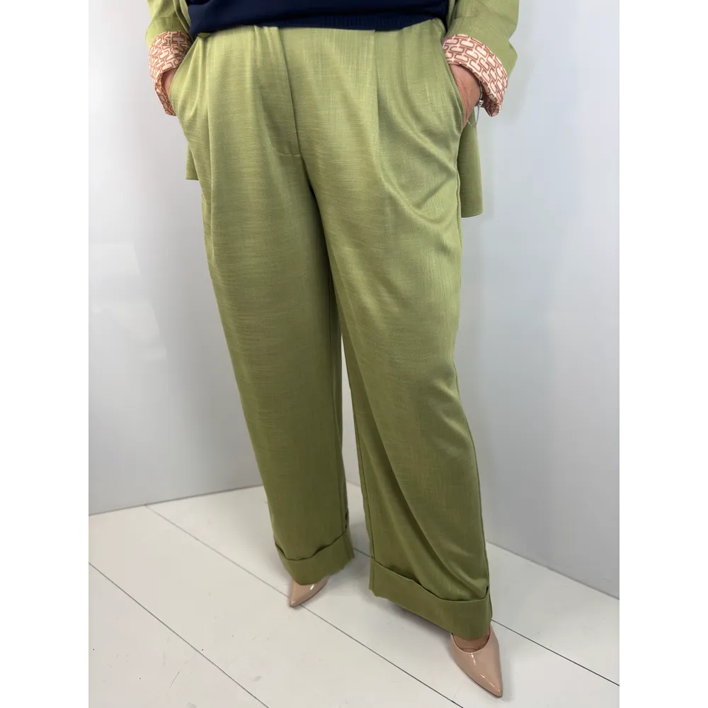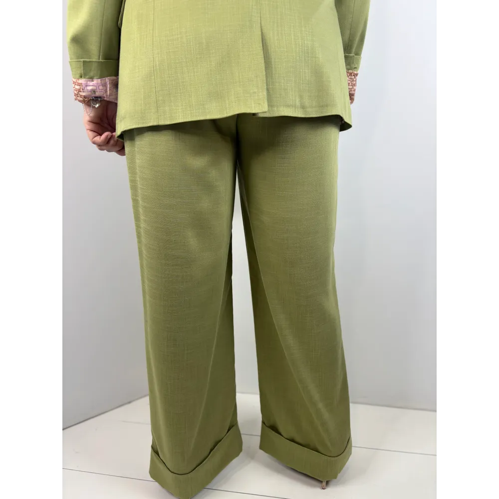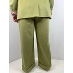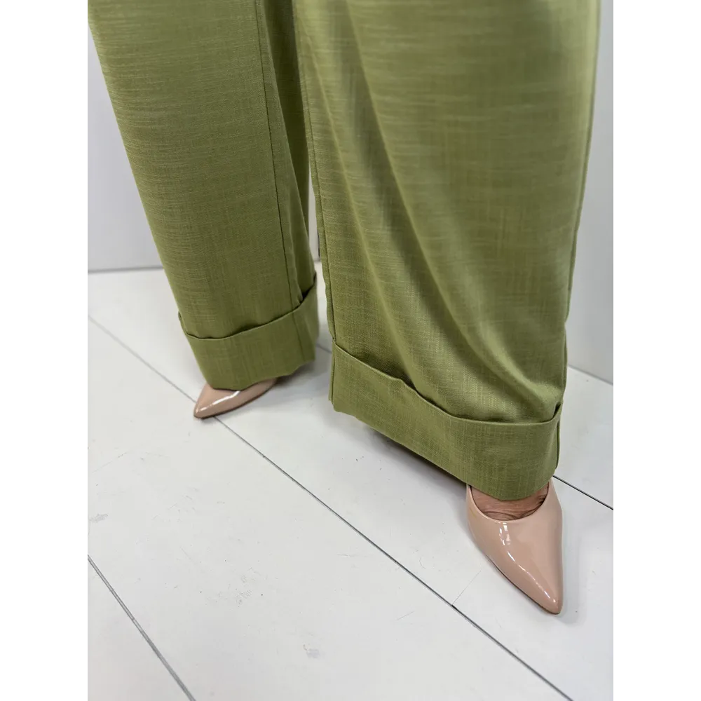 Pantalone misto viscosa con penses e balza.