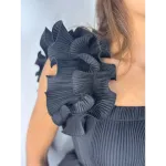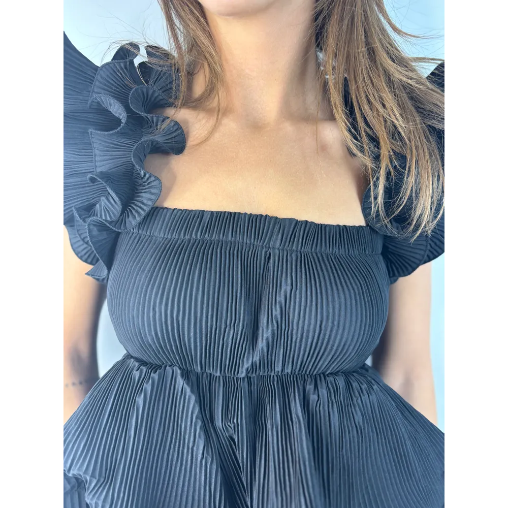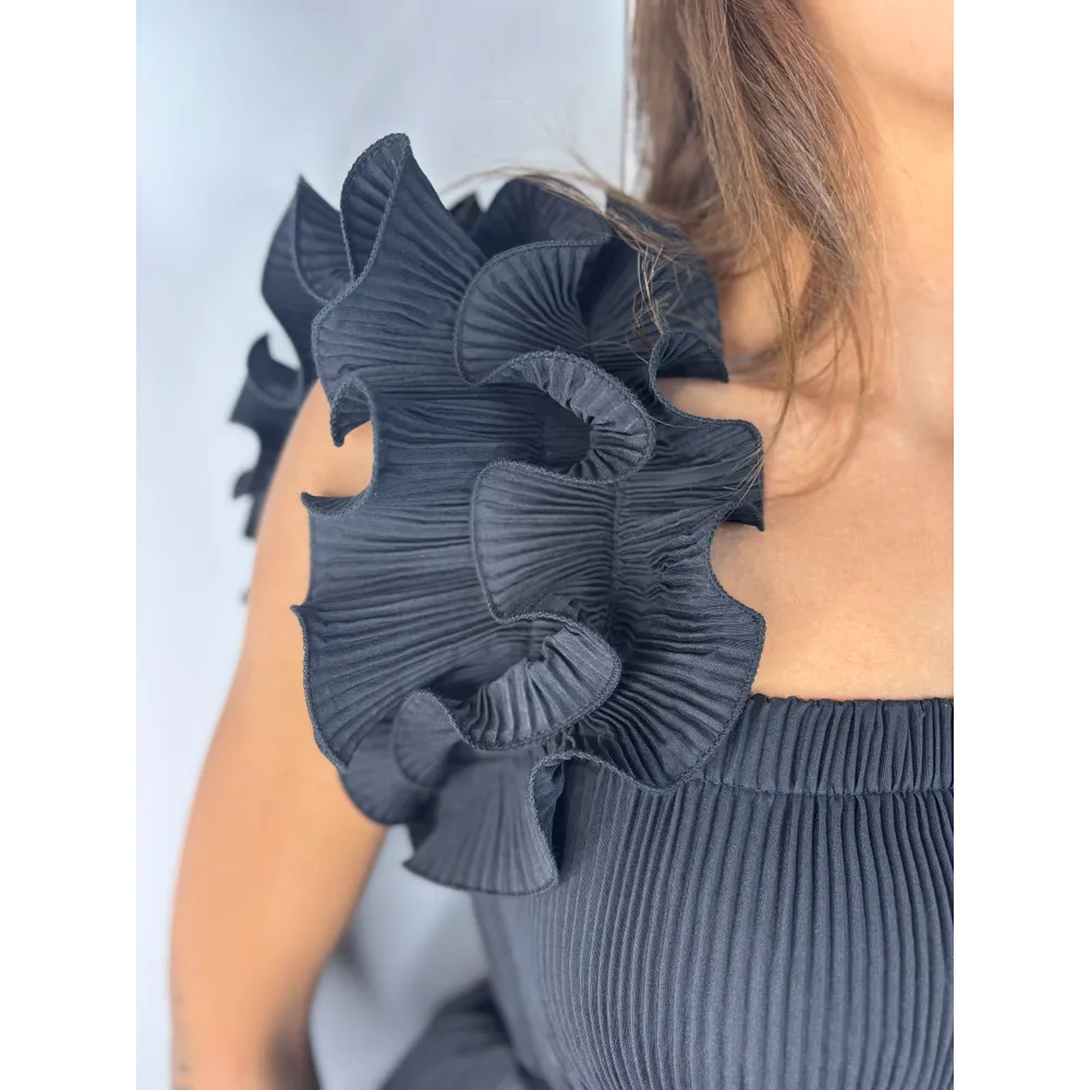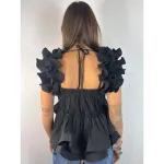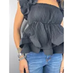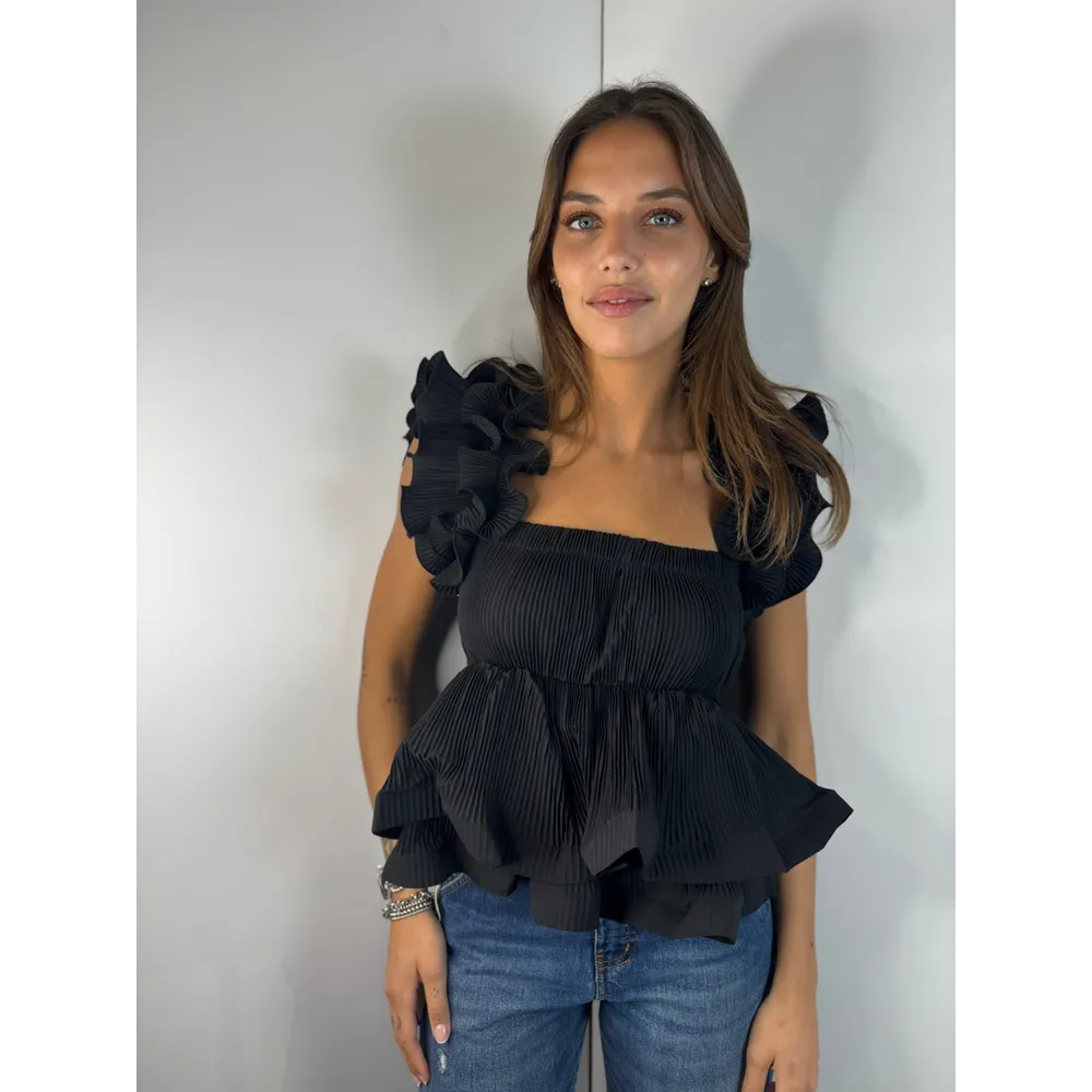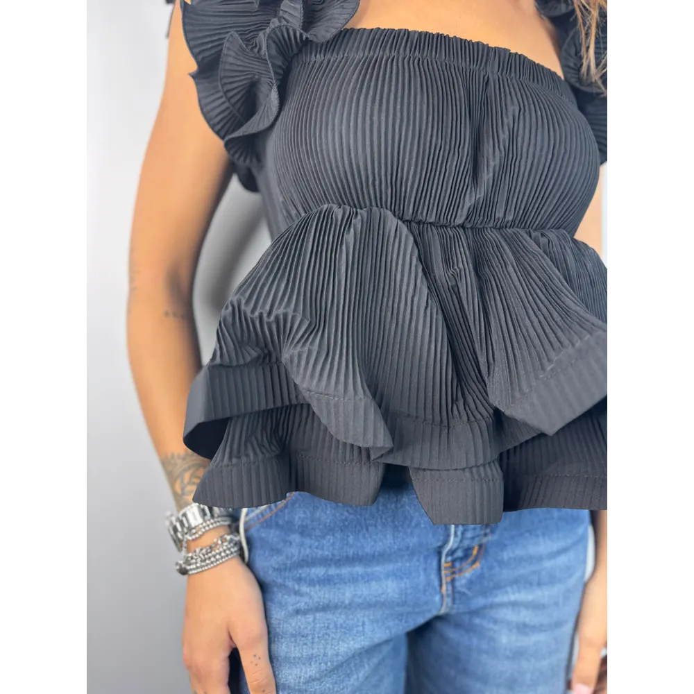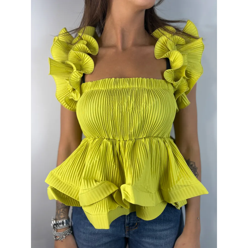 Top mini plissé con volant su spalline e fondo