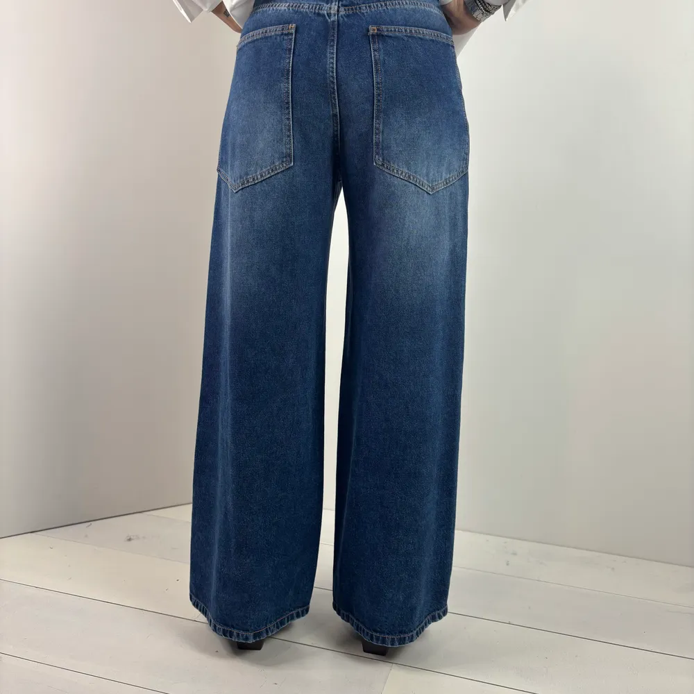 Jeans wide leg morbido. Tasche posteriori abbassate.