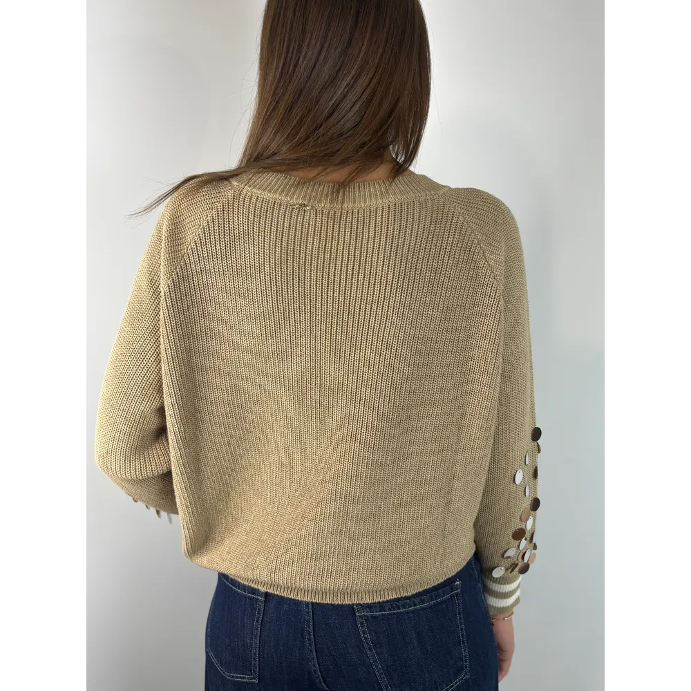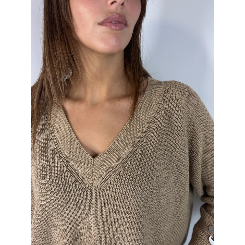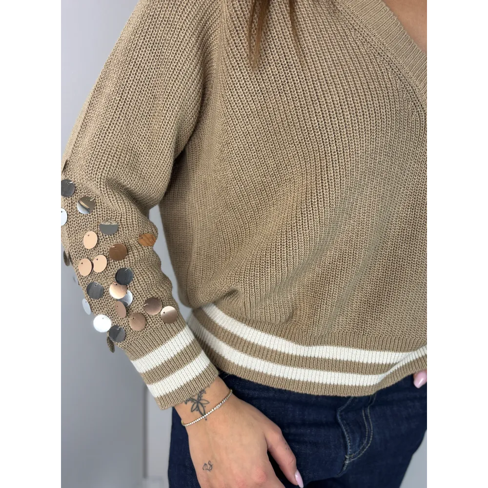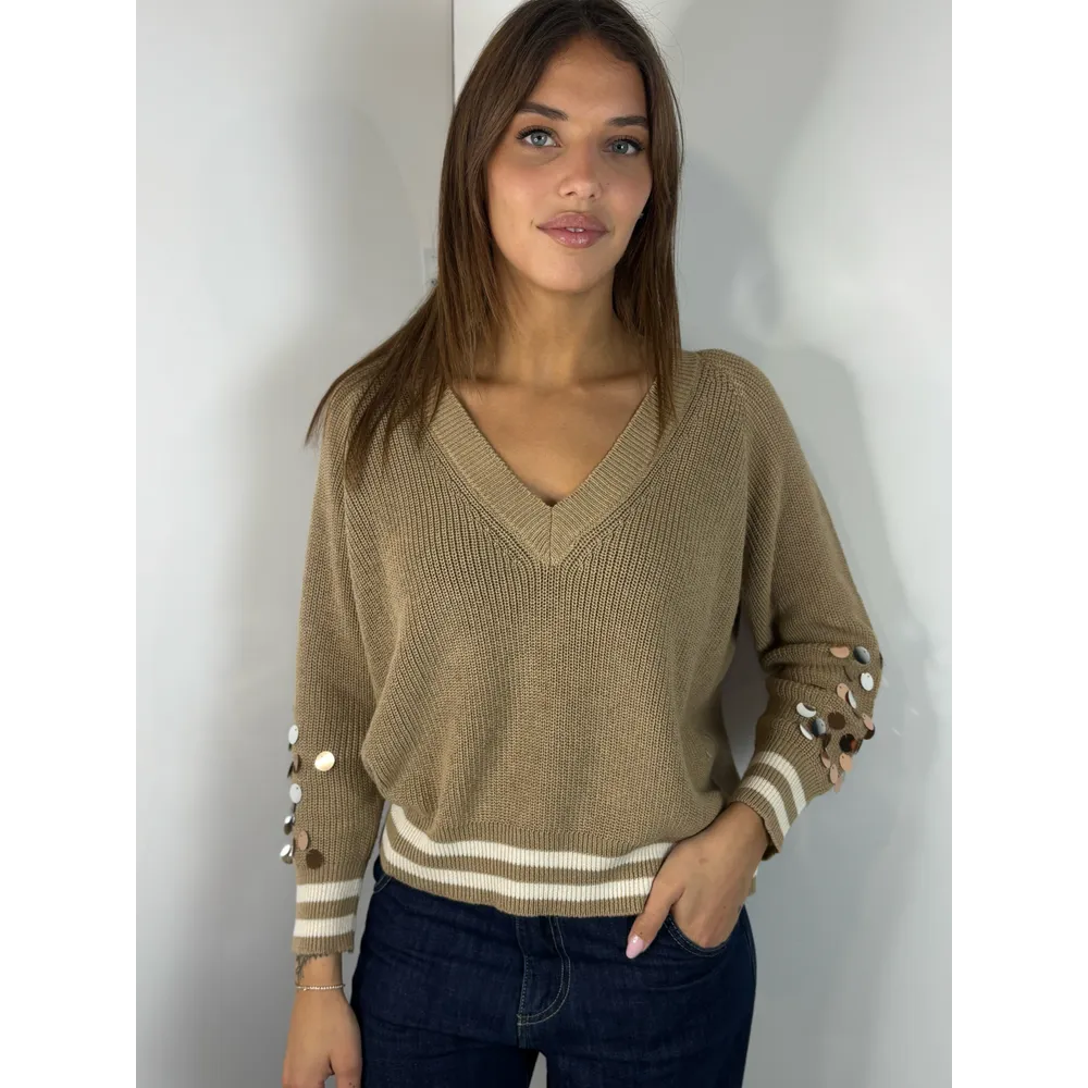 Maglia scollo V , bordo in contrasto.