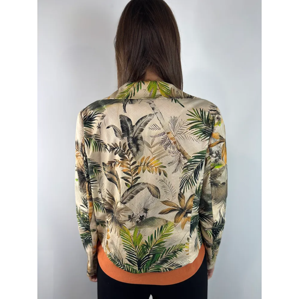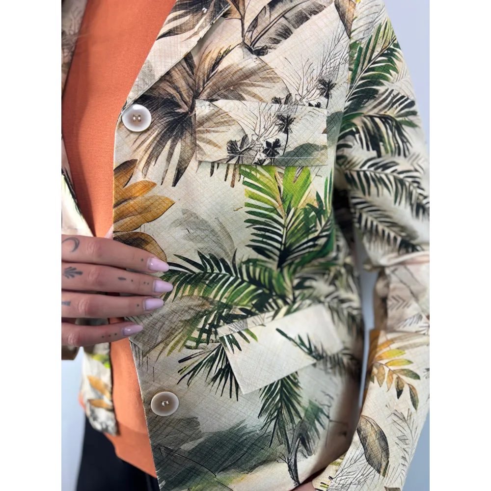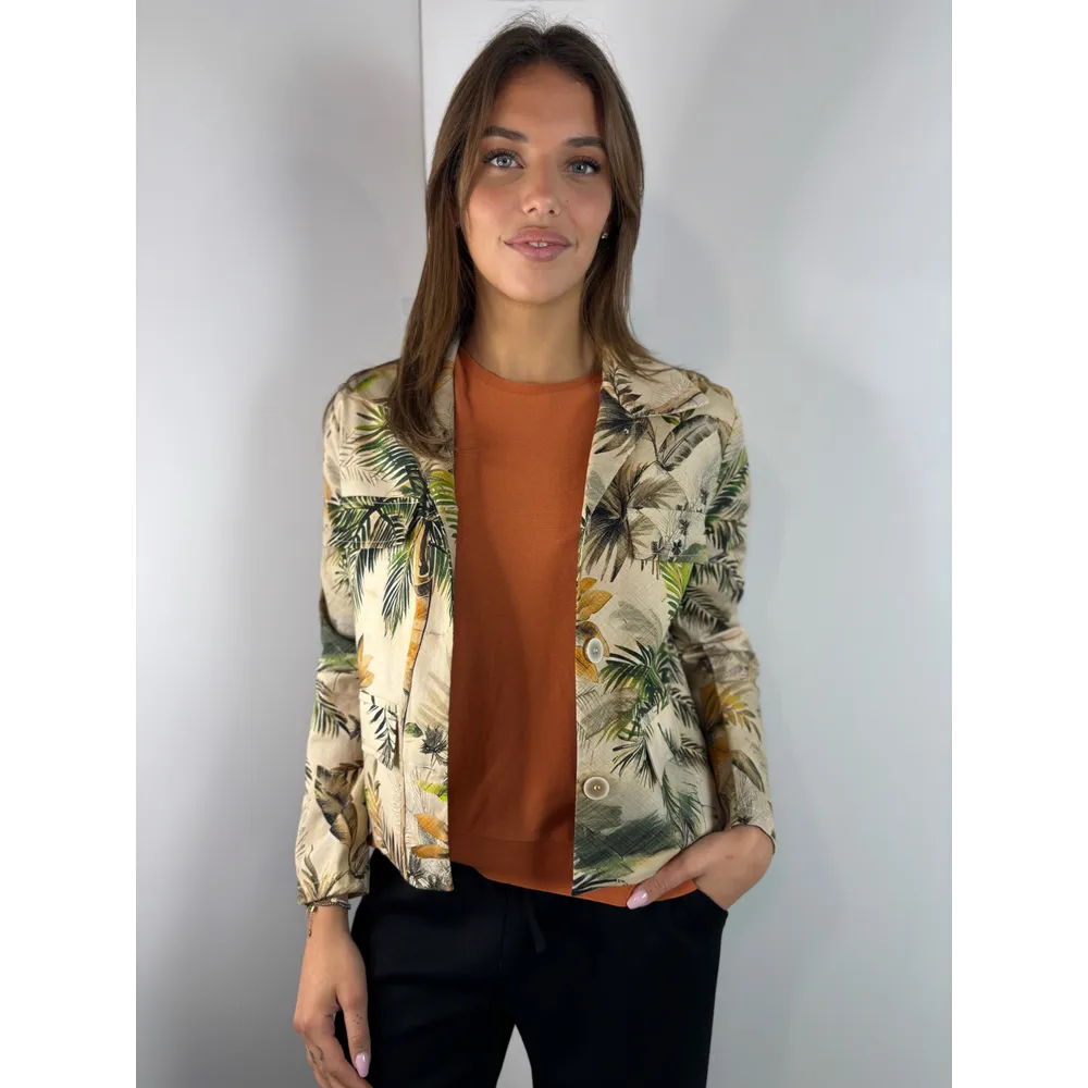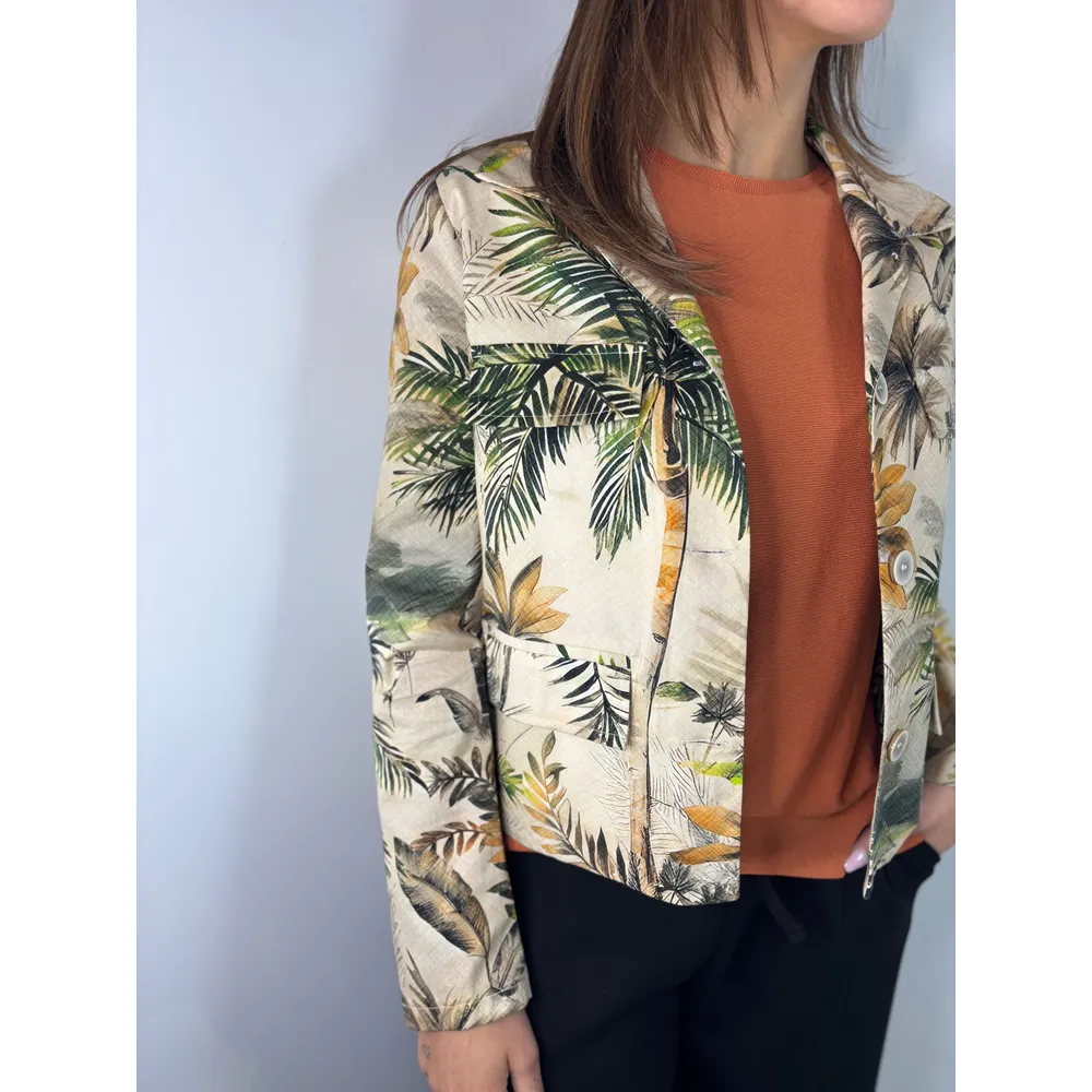 Giubbotto cotone in fantasia, chiusura a bottoni. Tasche con pattina.