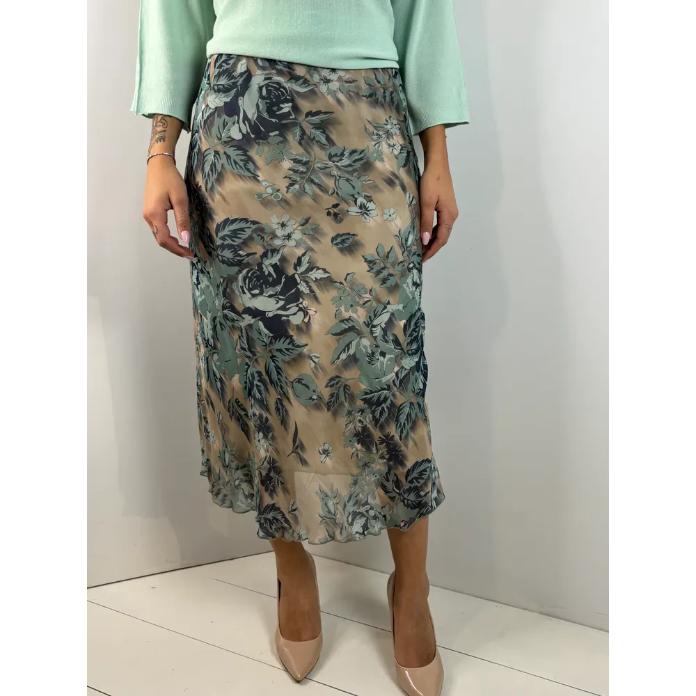 Gonna fantasia bouquet, con elastico in vita.