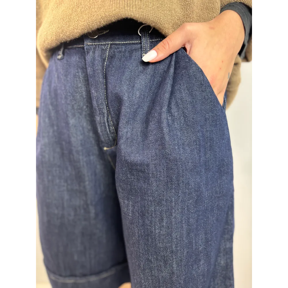 Bermuda in jeans slegato con risvolto