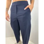 Pantalone a ovetto con tasche e coulisse su caviglie. Cuciture orizzontali sulle ginocchia.