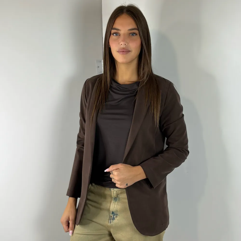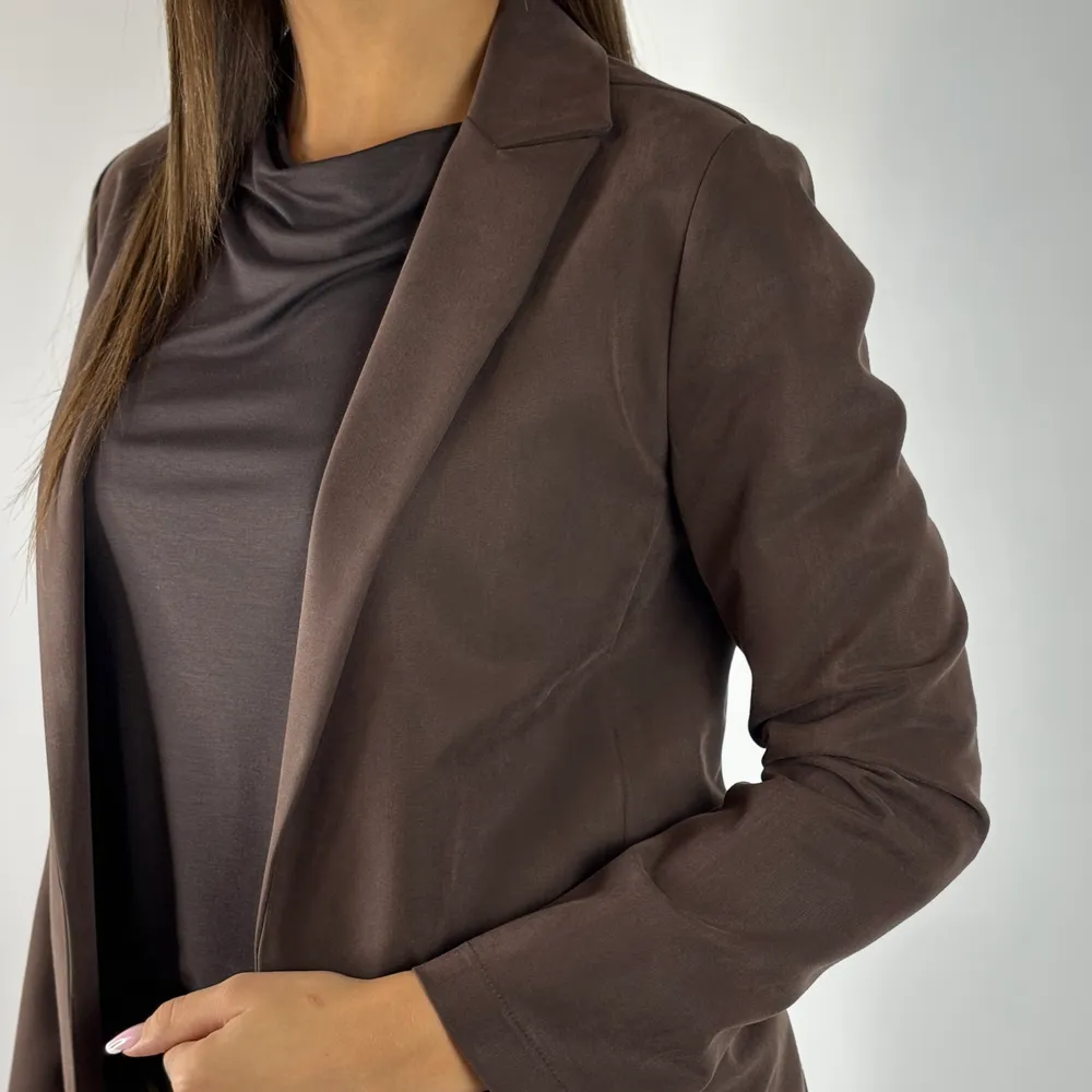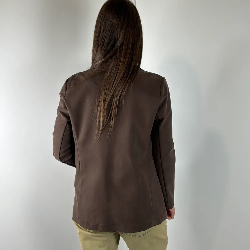 Giacca monopetto aperta sfoderata in dainetto. Tasche estetiche.
