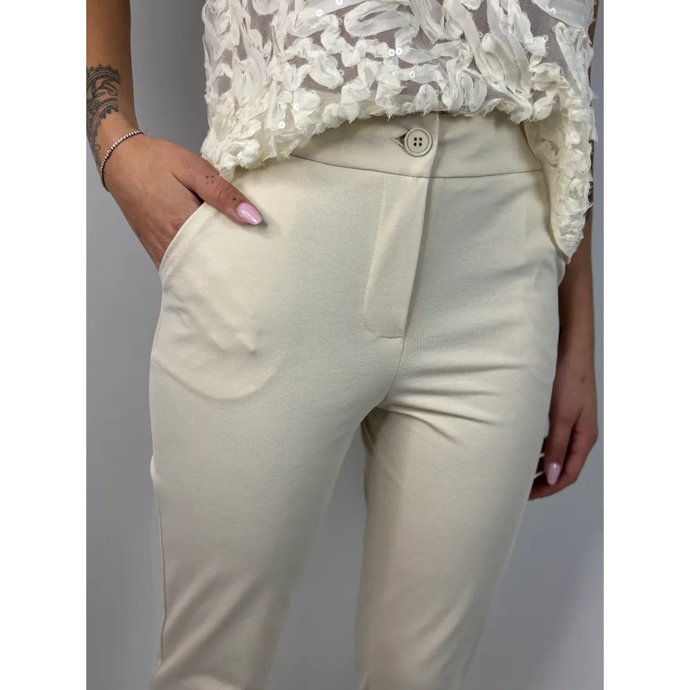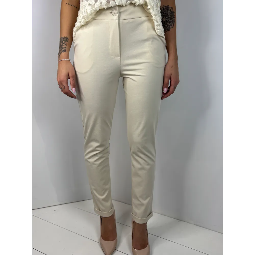Pantalone in punto milano con risvolto , tasche americane.